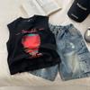 2025 Nueva Camiseta sin Mangas de Seda de Hielo Mediana y Grande para Niños, Popular de Verano, Versátil, Moderna, sin Mangas, Holgada, para Niños y Niñas