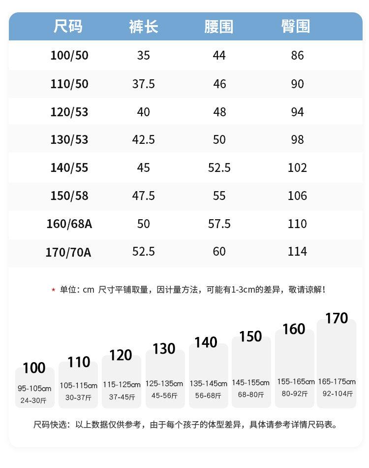 Recommended height for size 100 is 95-105cm, Size 110 recommended height 105-115cm, Size 120 recommended heigh...