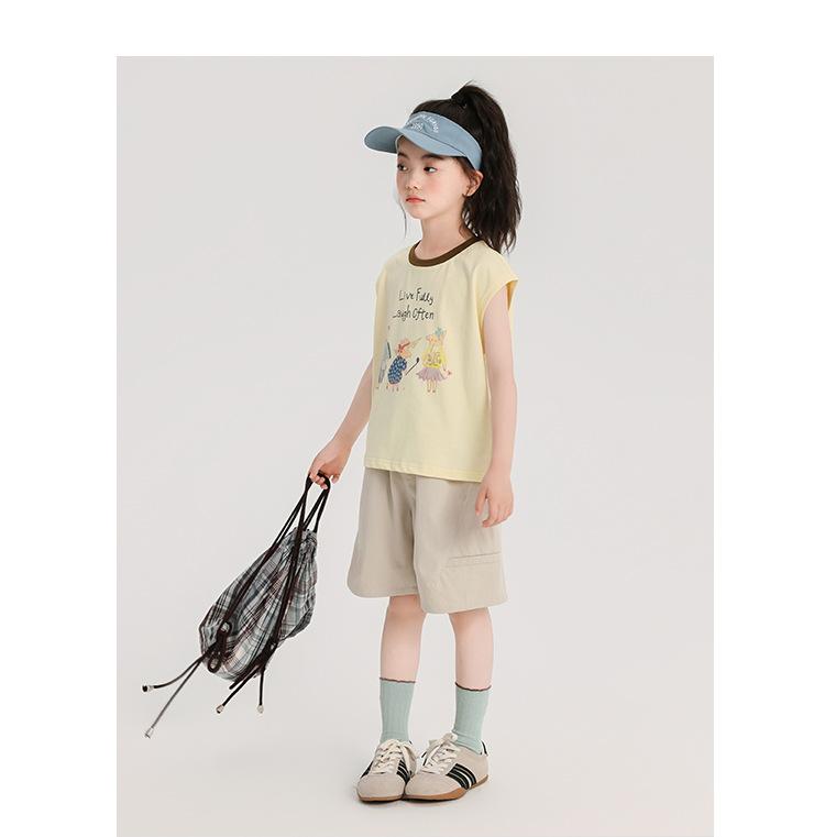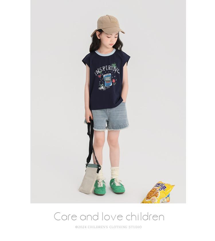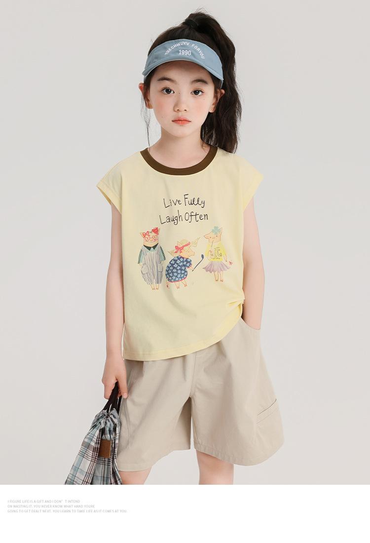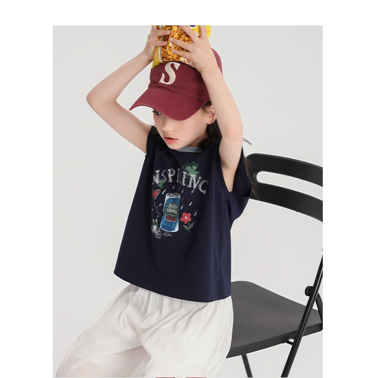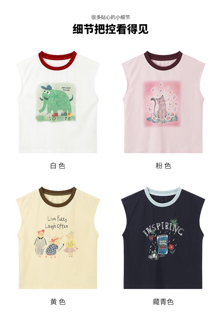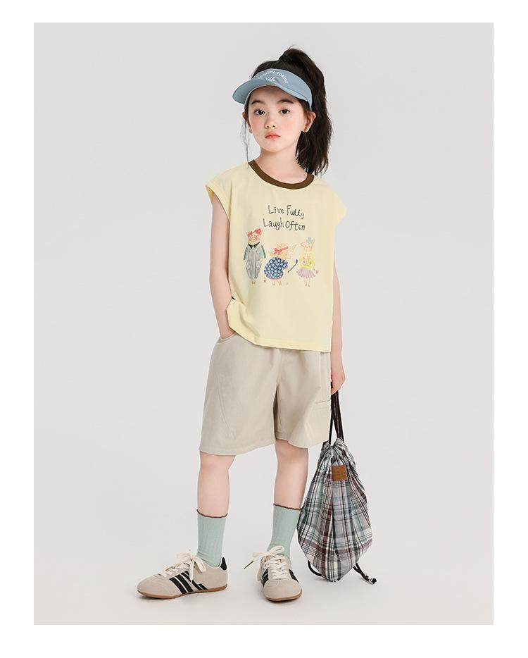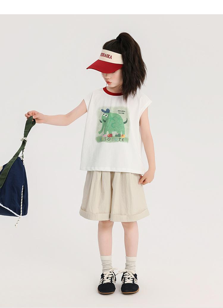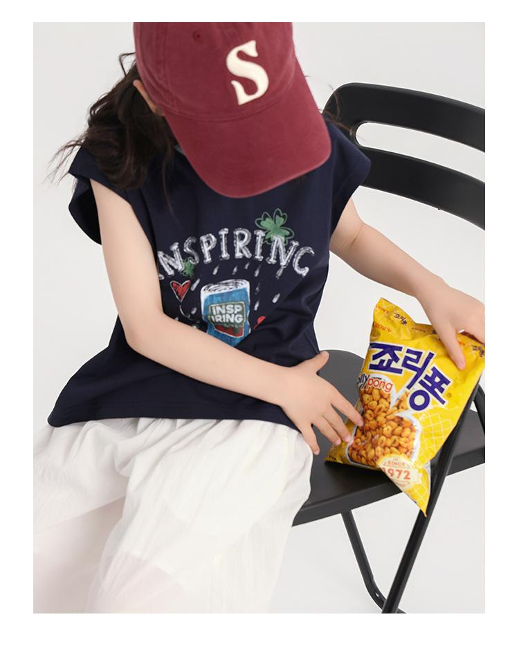 Pudding Haru Ropa de Verano para Niñas Chaleco de Algodón 2025 Nuevo Verano Niños Dulce y Fresco Camiseta sin Mangas de Dibujos Animados