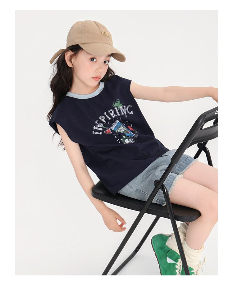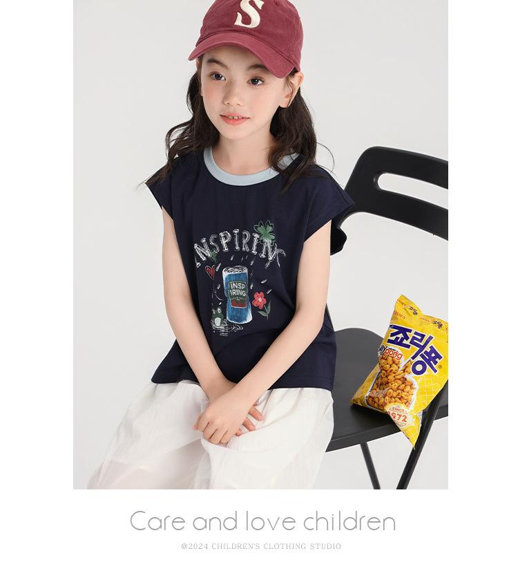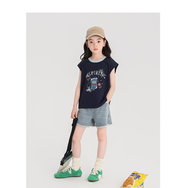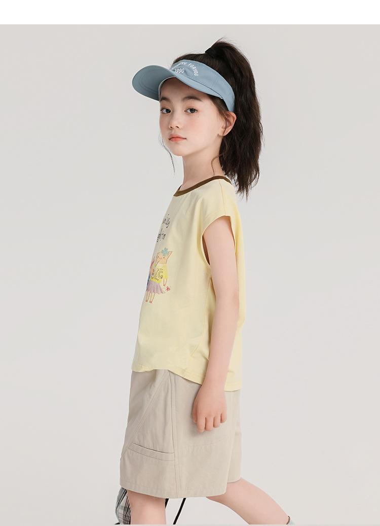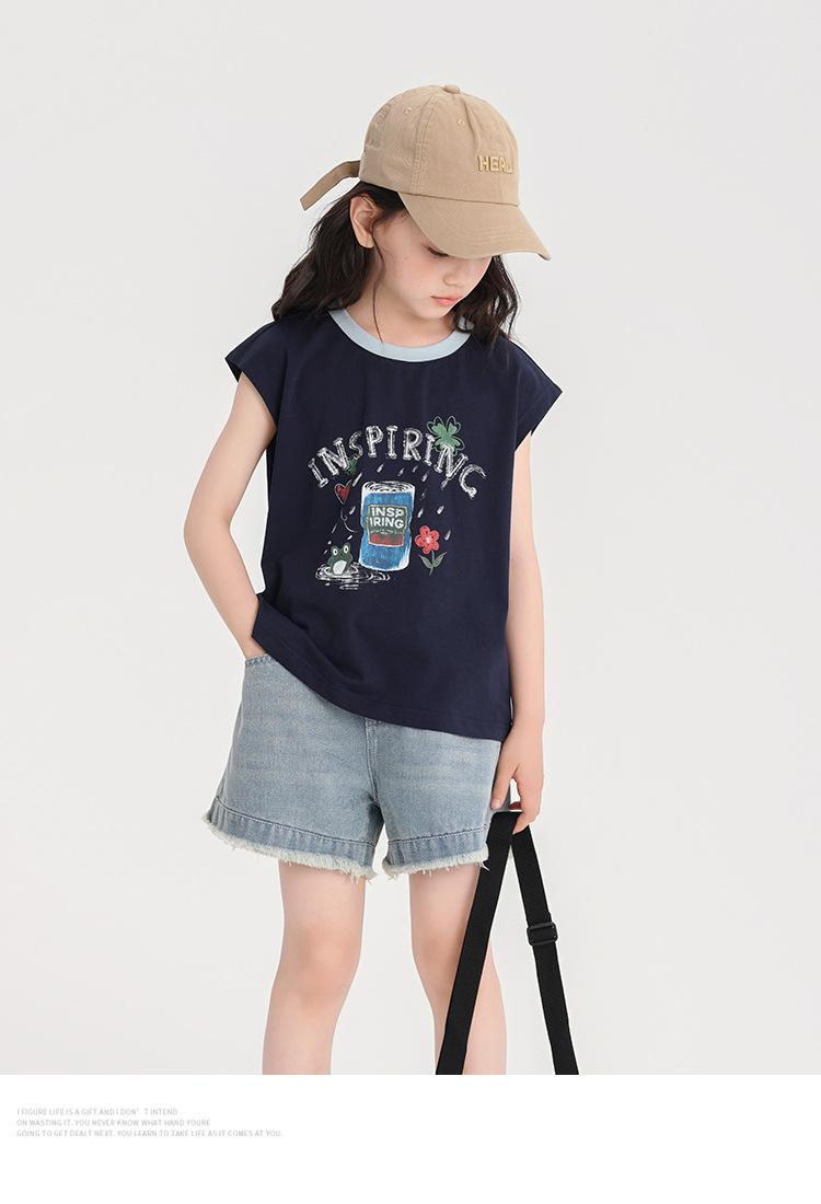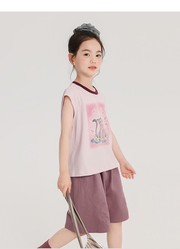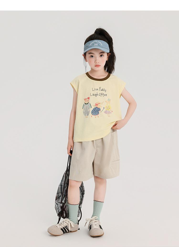 Pudding Haru Ropa de Verano para Niñas Chaleco de Algodón 2025 Nuevo Verano Niños Dulce y Fresco Camiseta sin Mangas de Dibujos Animados
