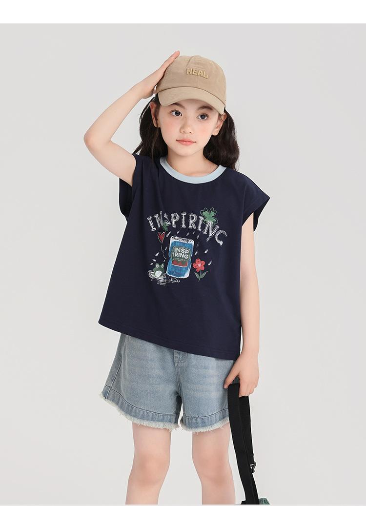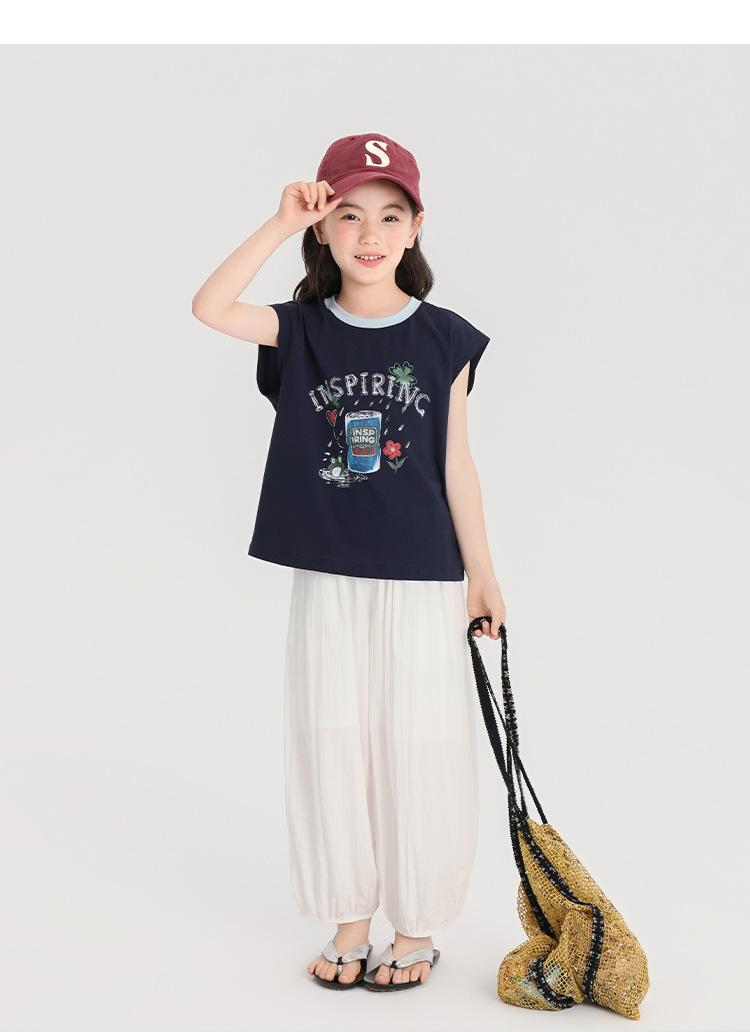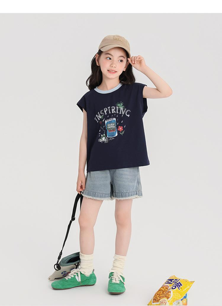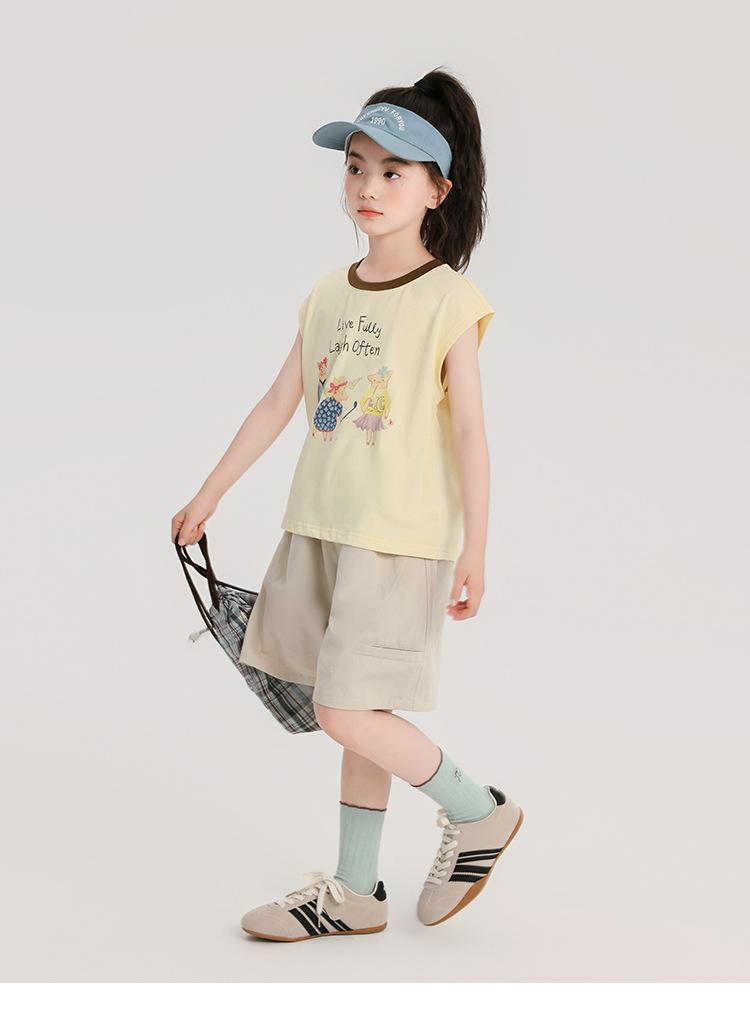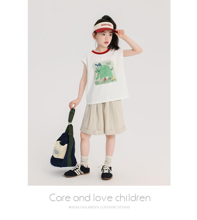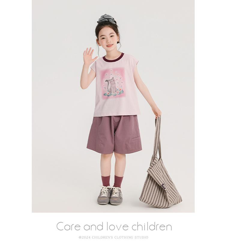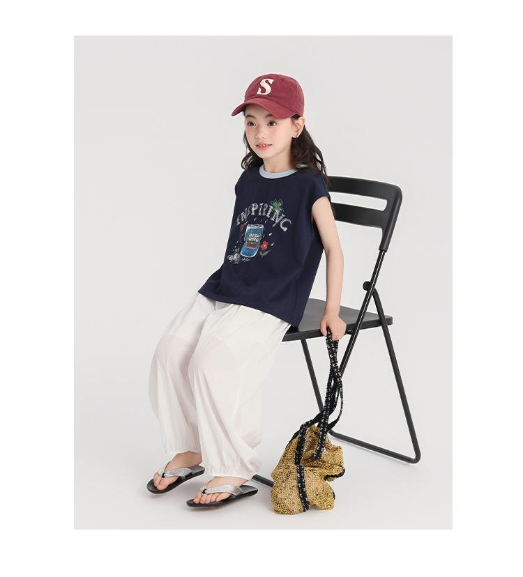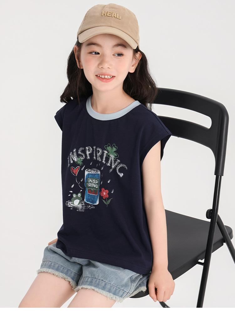 Pudding Haru Ropa de Verano para Niñas Chaleco de Algodón 2025 Nuevo Verano Niños Dulce y Fresco Camiseta sin Mangas de Dibujos Animados