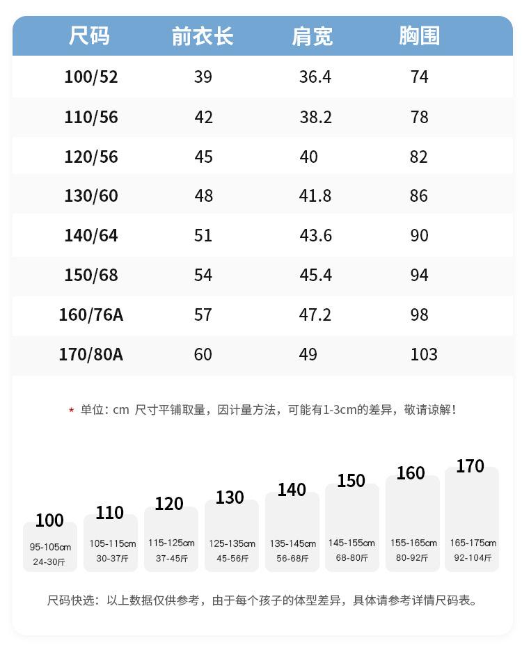 Recommended height for size 100 is 95-105cm, Size 110 recommended height 105-115cm, Size 120 recommended heigh...