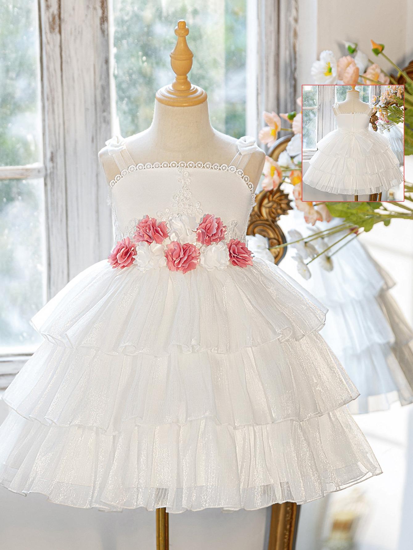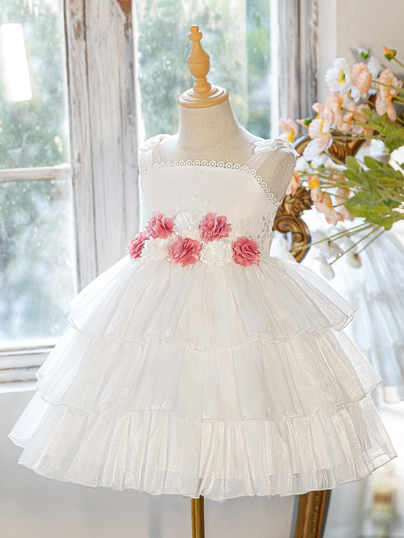Falda de Pastel para Niñas de Amazon Vestido de Falda Puff de Malla de Flores Tridimensionales para Niños Vestido de Noche para Niñas Ropa para Actuación de Piano