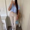 Primavera y Verano Estilo Europeo y Americano para Mujer Cuello Redondo Multicolor Transfronterizo Nueva Moda Casual Simple Camisa Holgada