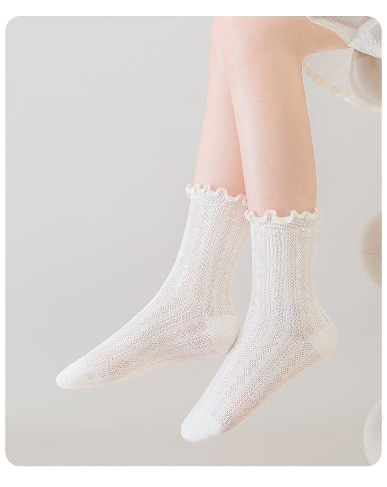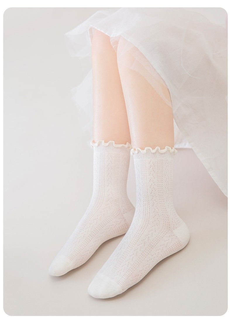 Calcetines Blancos Delgados de Primavera y Verano para Niñas Malla Transpirable Princesa Lindo Encaje Desodorante Absorbente de Sudor Calcetines de Media Caña para Niños