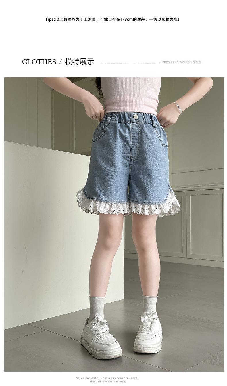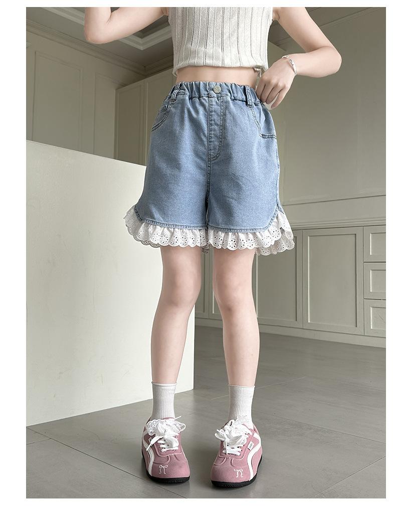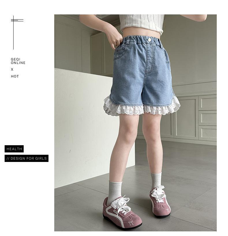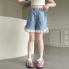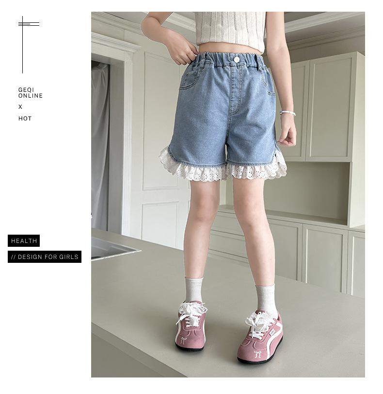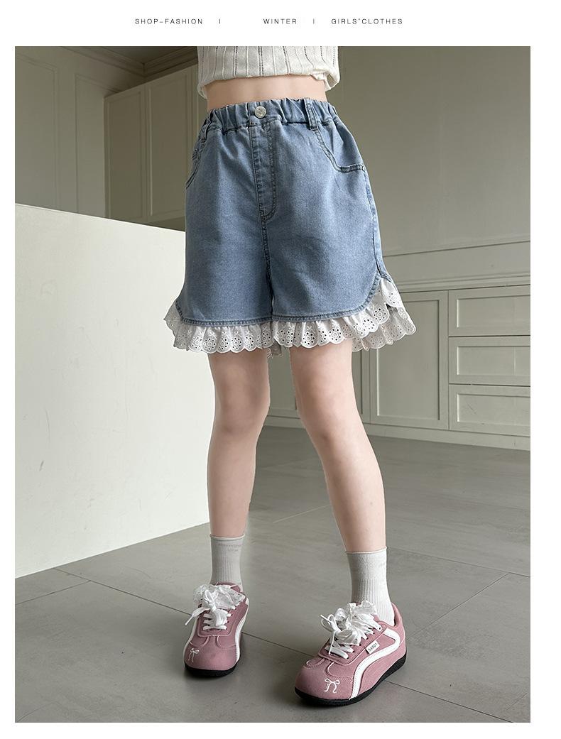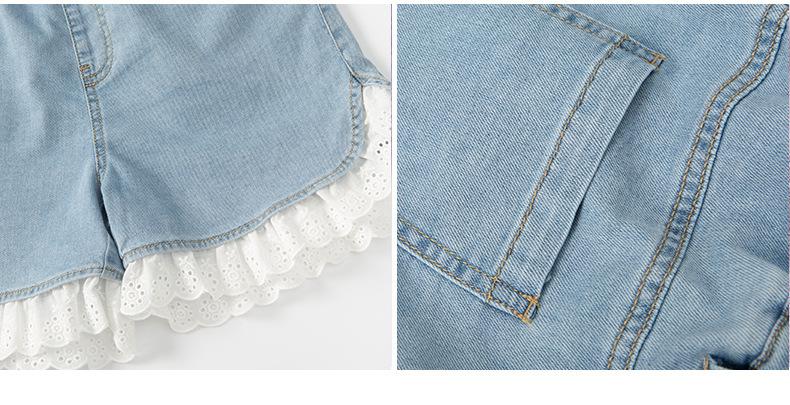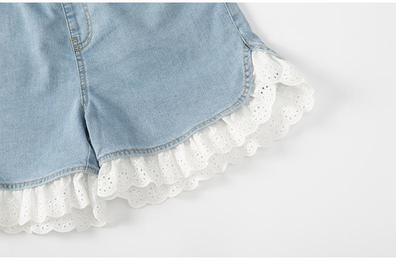 Shorts de Encaje para Niñas Verano Nuevo Estilo 2025 Europeos y Americanos Niñas Bebé Dulces y Lindos Shorts de Mezclilla Bordados con Flores