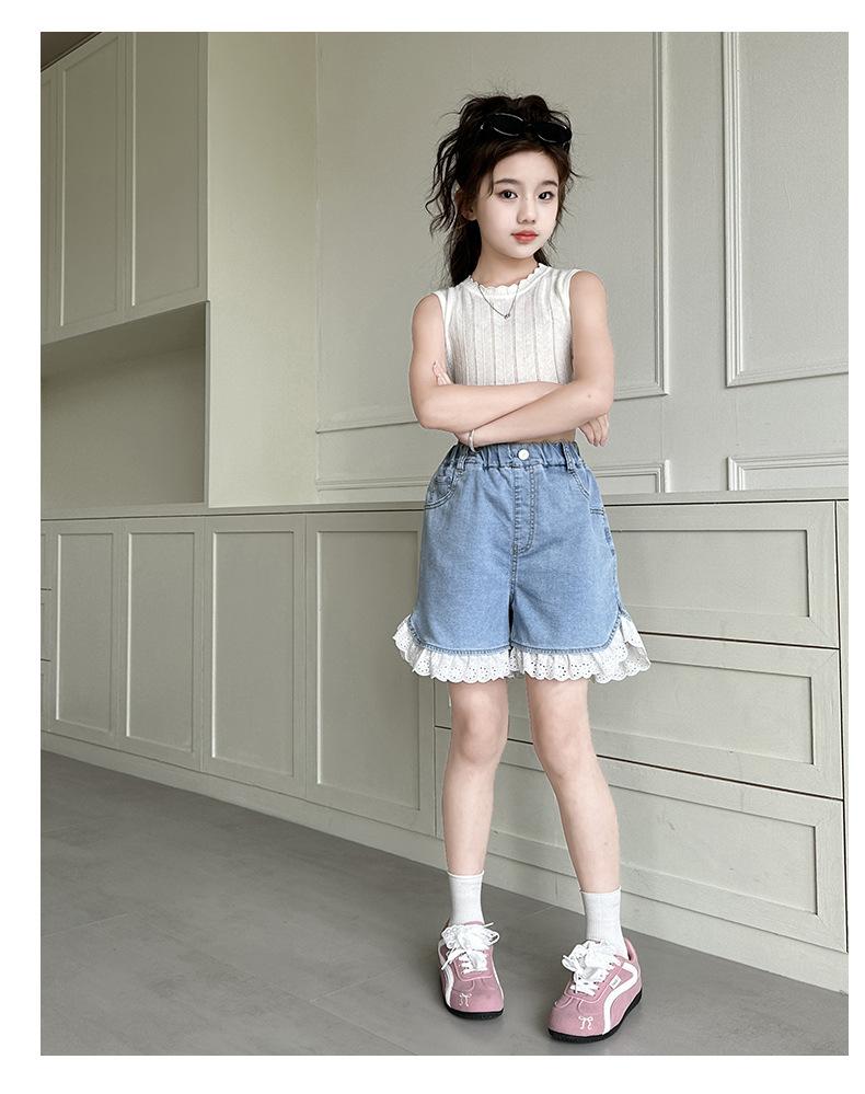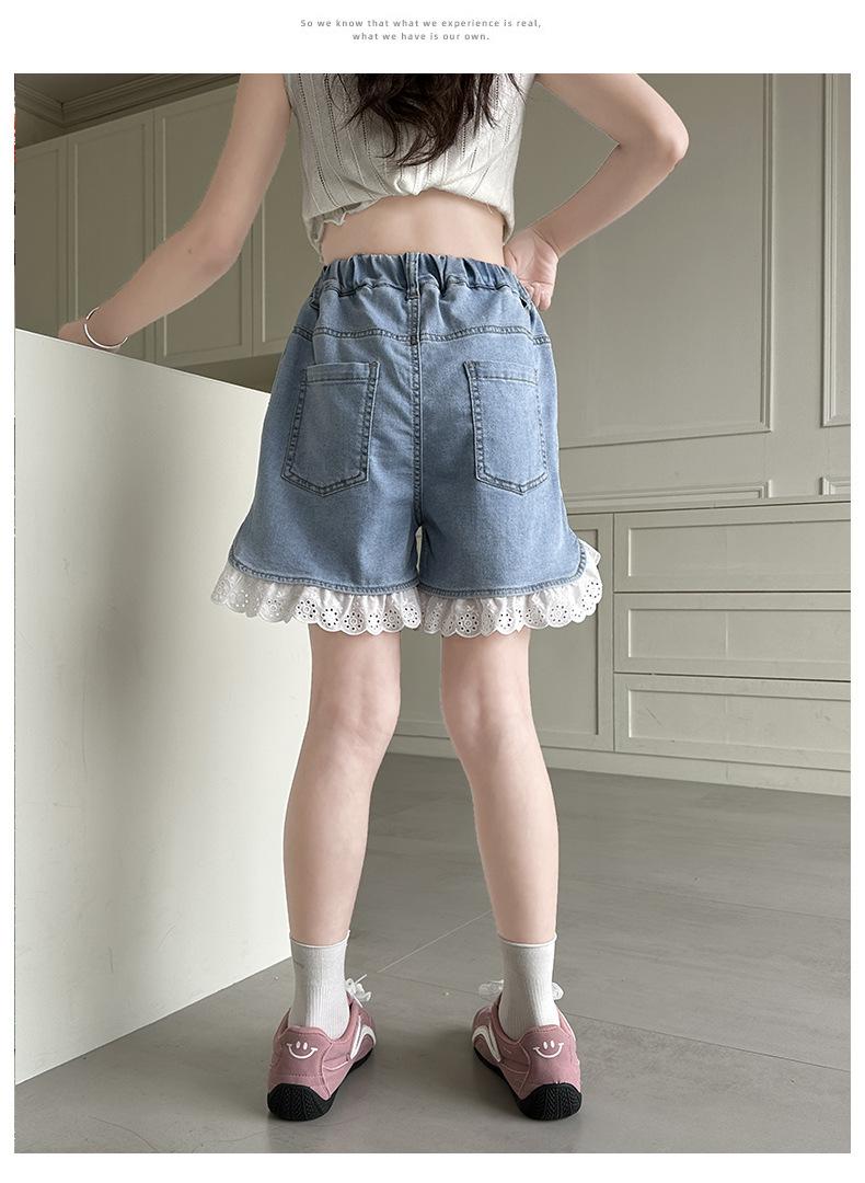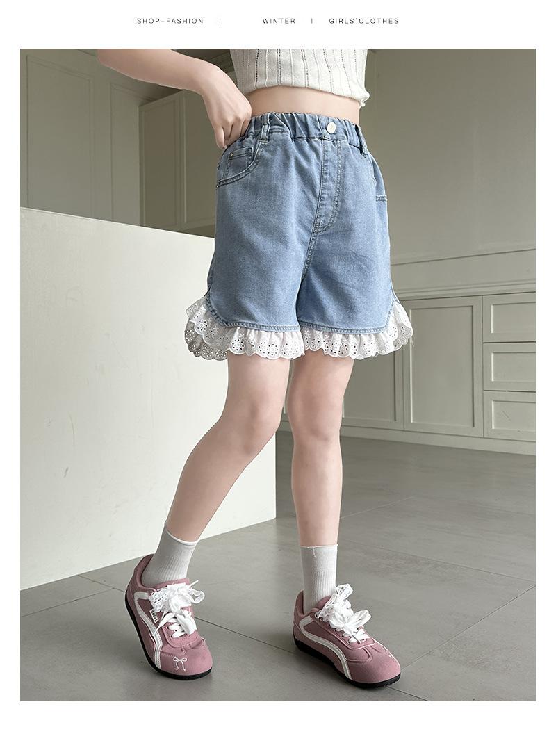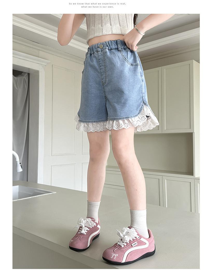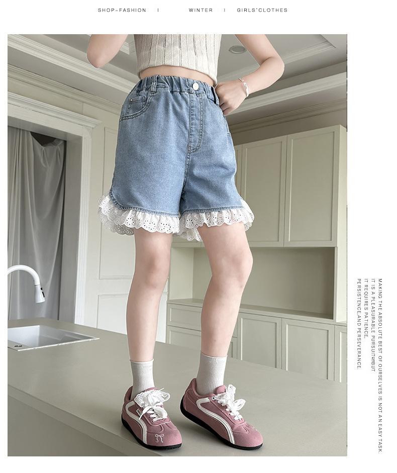 Shorts de Encaje para Niñas Verano Nuevo Estilo 2025 Europeos y Americanos Niñas Bebé Dulces y Lindos Shorts de Mezclilla Bordados con Flores