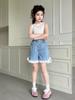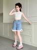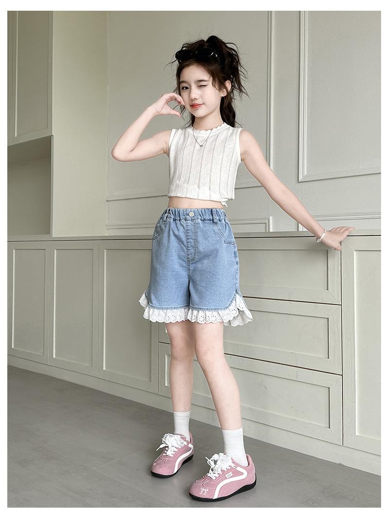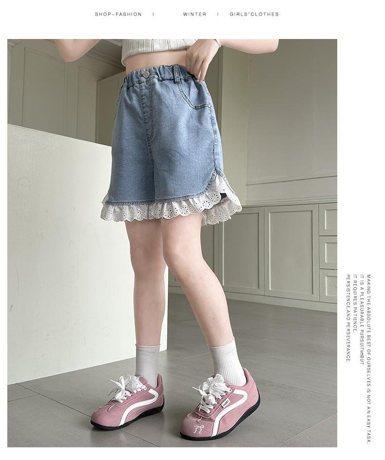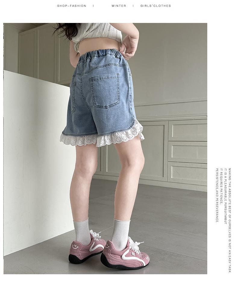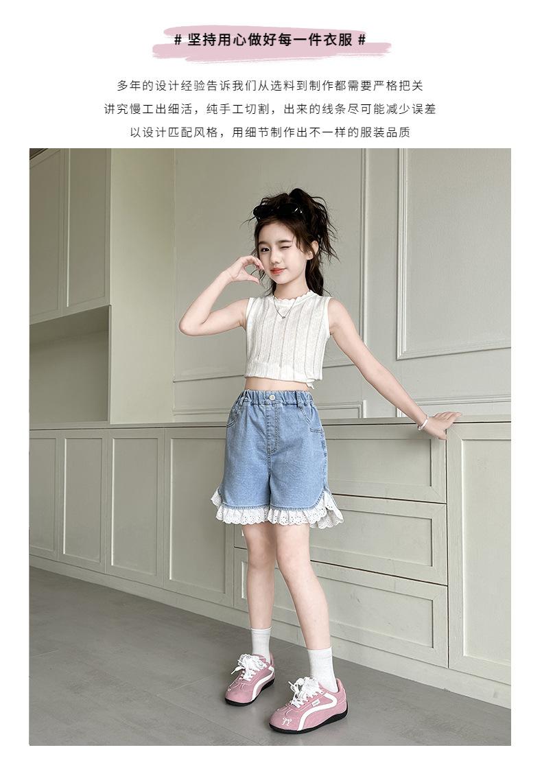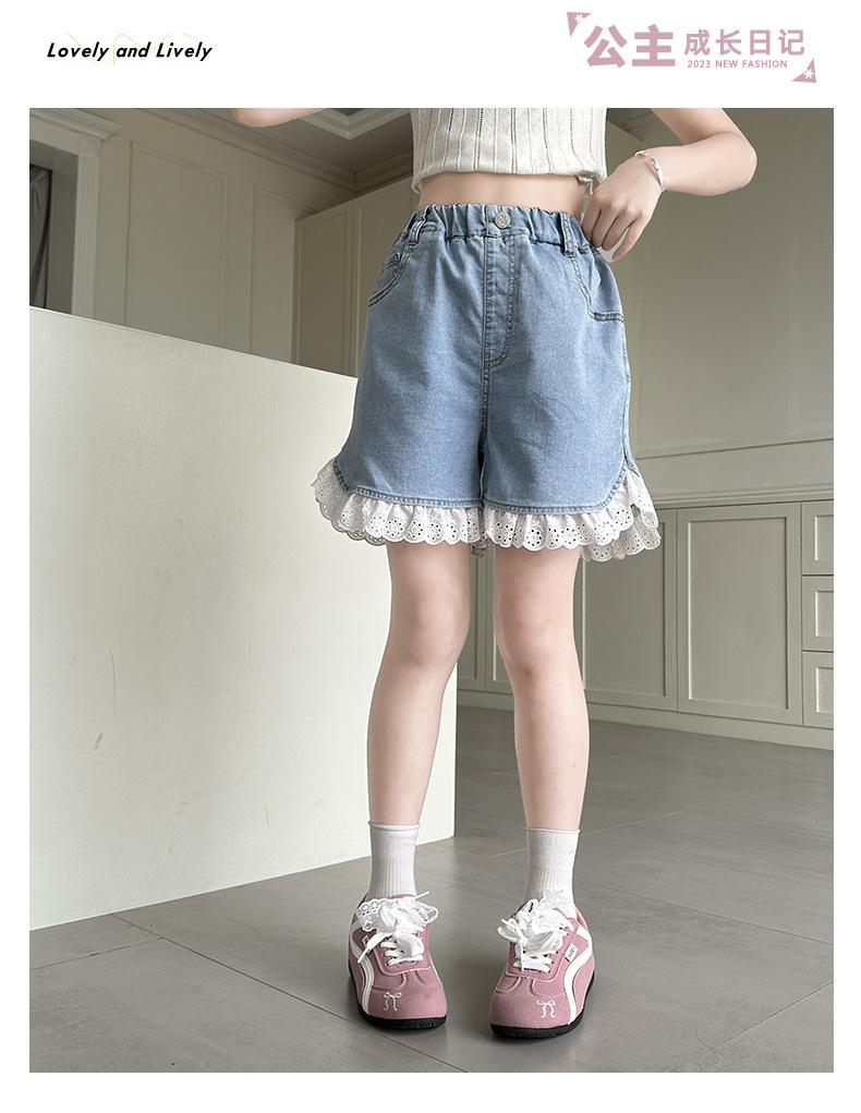 Shorts de Encaje para Niñas Verano Nuevo Estilo 2025 Europeos y Americanos Niñas Bebé Dulces y Lindos Shorts de Mezclilla Bordados con Flores
