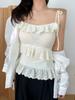 2025 Novo Estilo de Verão Camisola de Renda Redutora de Idade para Mulheres Usar por Fora e por Dentro para Pessoas Baixas Estilo Coreano Alças Cor Pura Aparência Emagrecedora