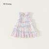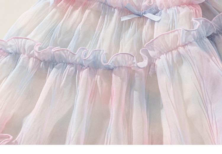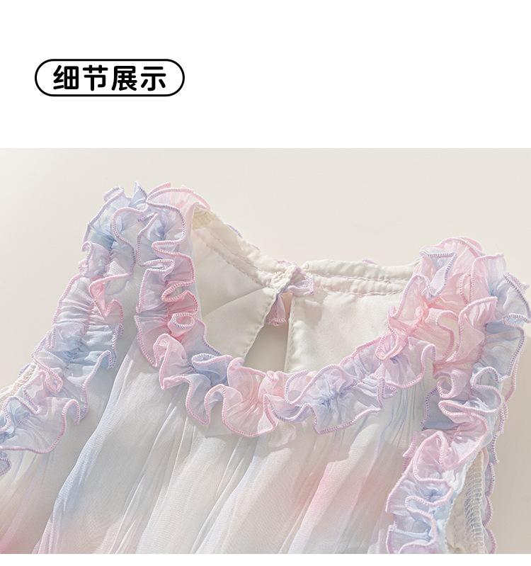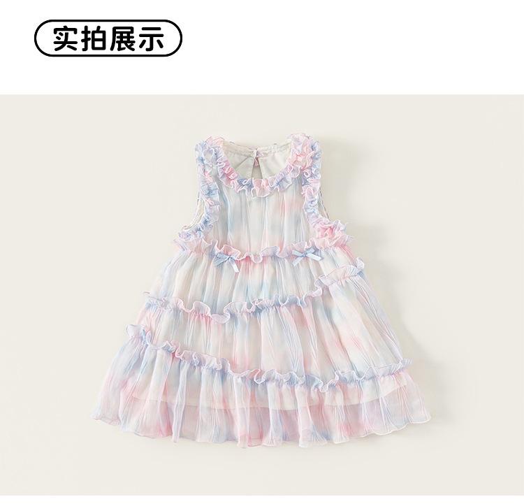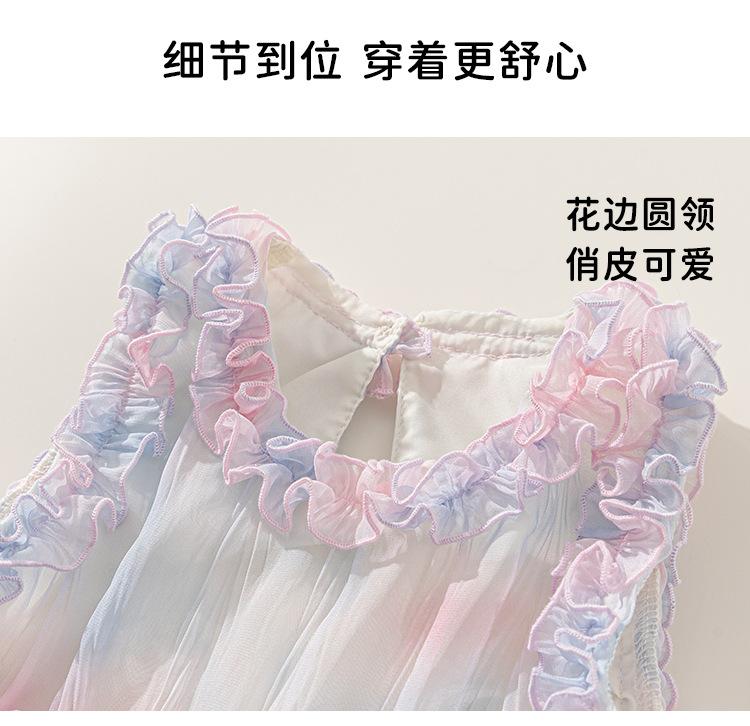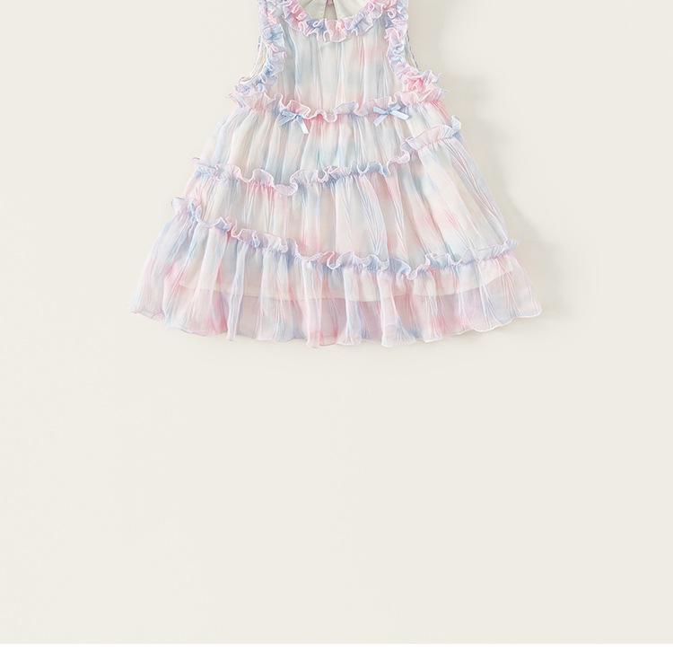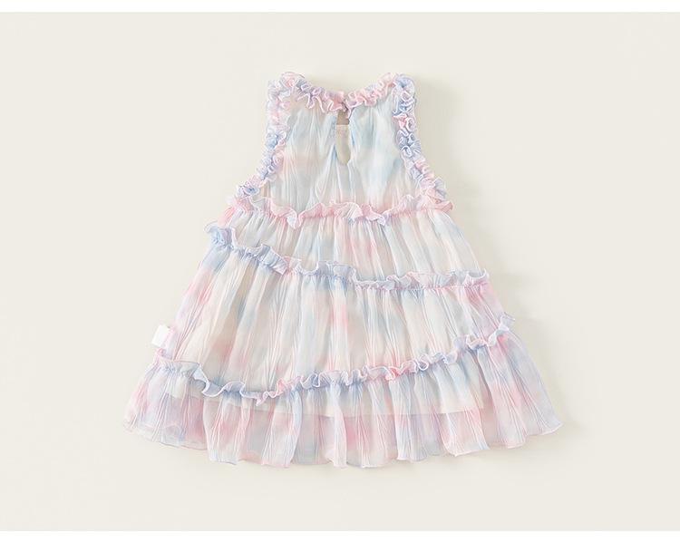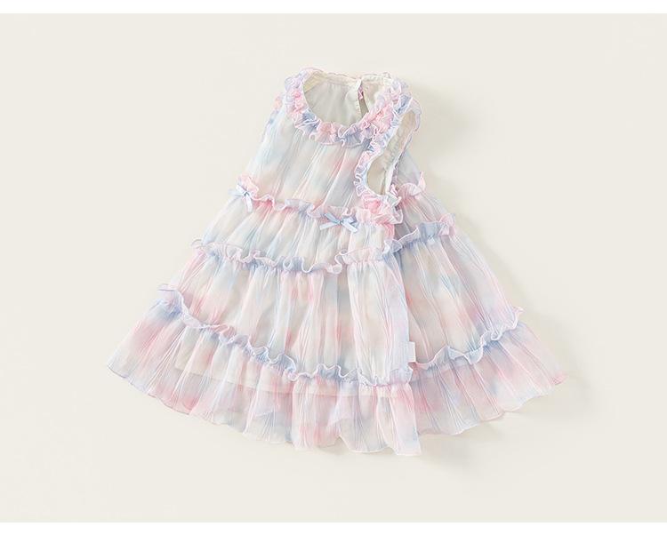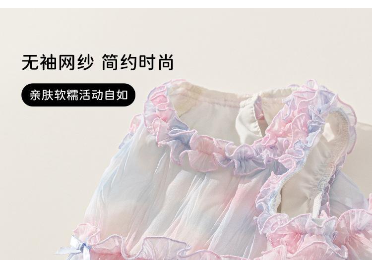 Vestido de Niña Bangxuan Verano Nuevo Sin Mangas con Volantes Falda de Malla Dulce Falda de Princesa Falda para Niños