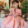 Vestido de niña, vestido de princesa, minifalda rosa, vestido de presentación de piano, pasarela, anfitrión de cumpleaños, falda de niña de las flores de estilo occidental