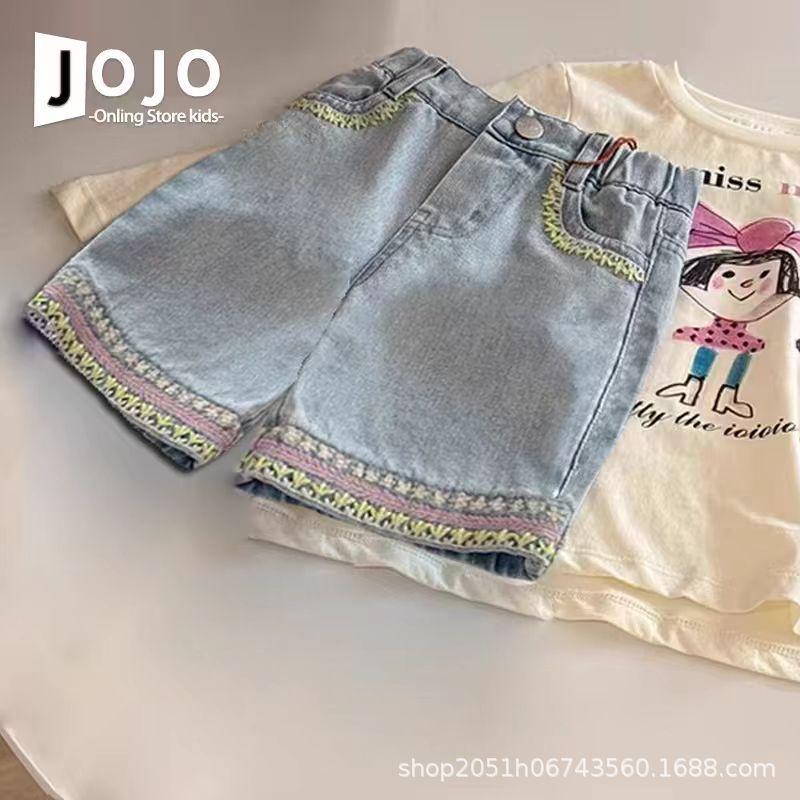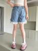 Ropa Exterior de Verano 2024 para Niñas Estilo Coreano Nueva Delgada Estilo Occidental Shorts de Mezclilla con Encaje Bordado para Niños