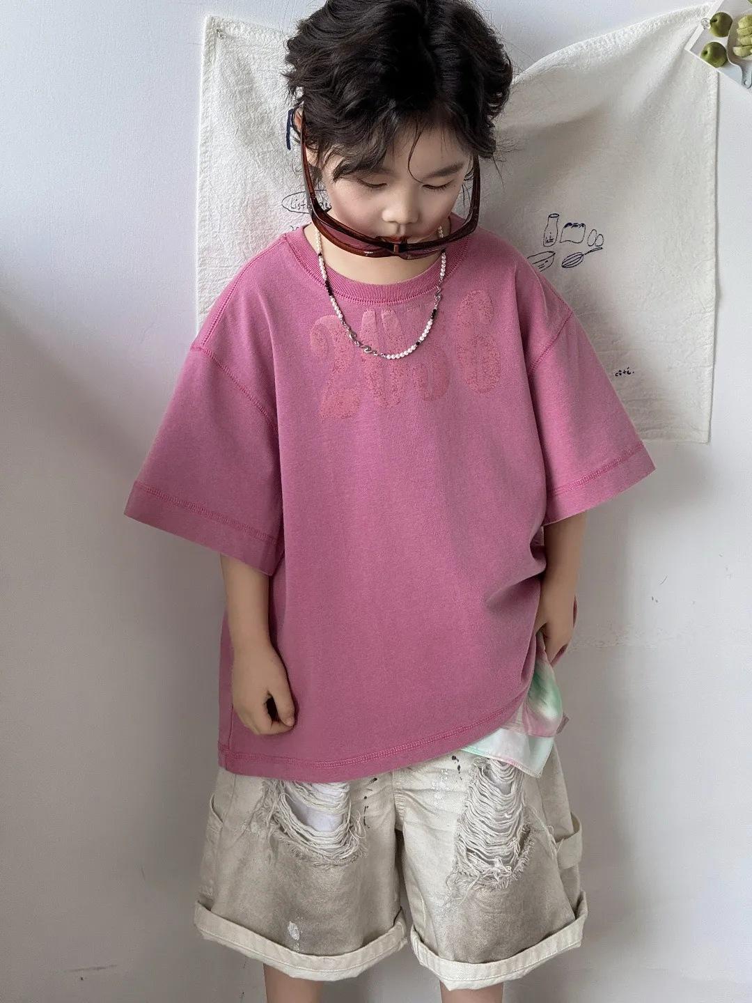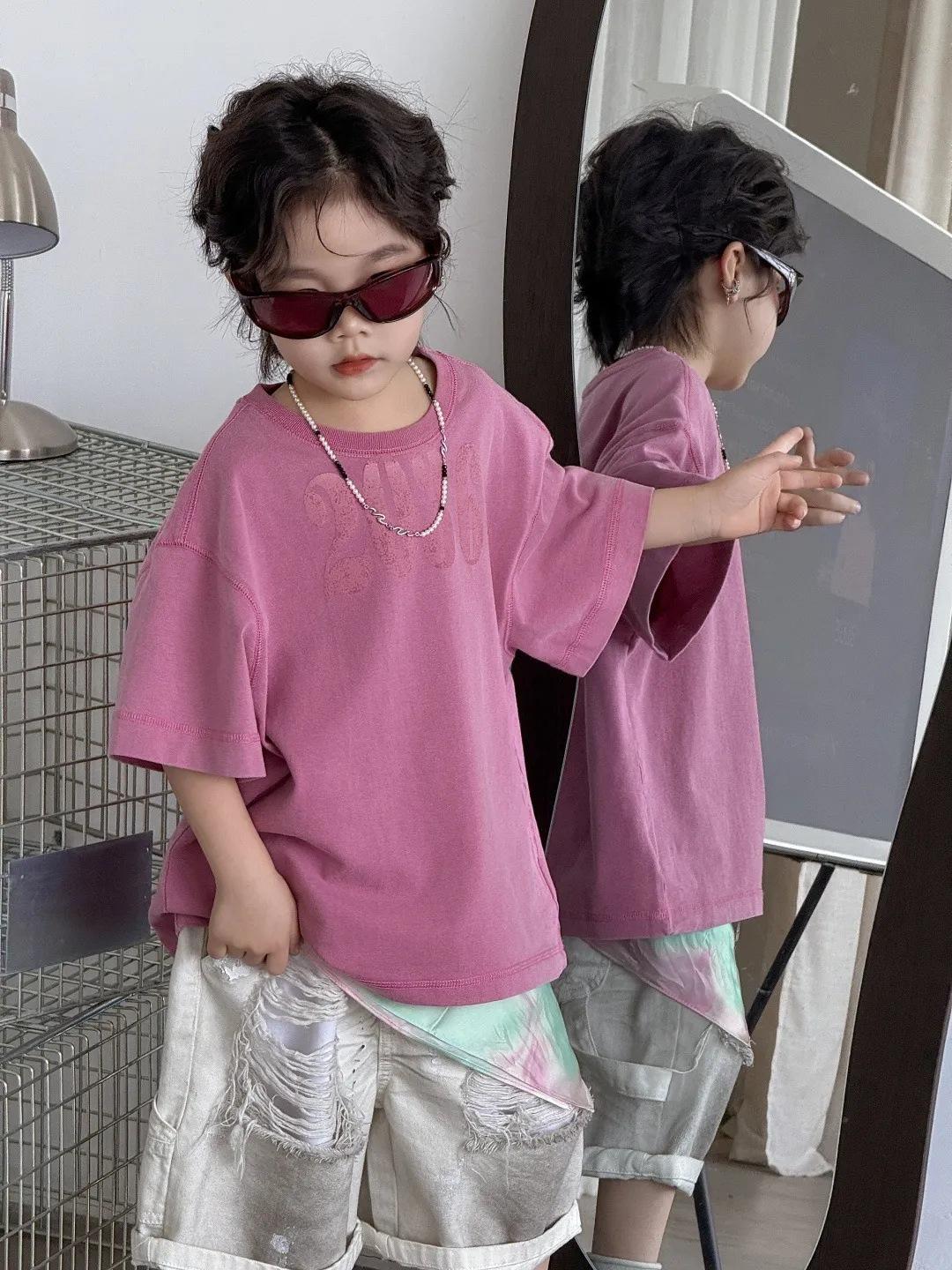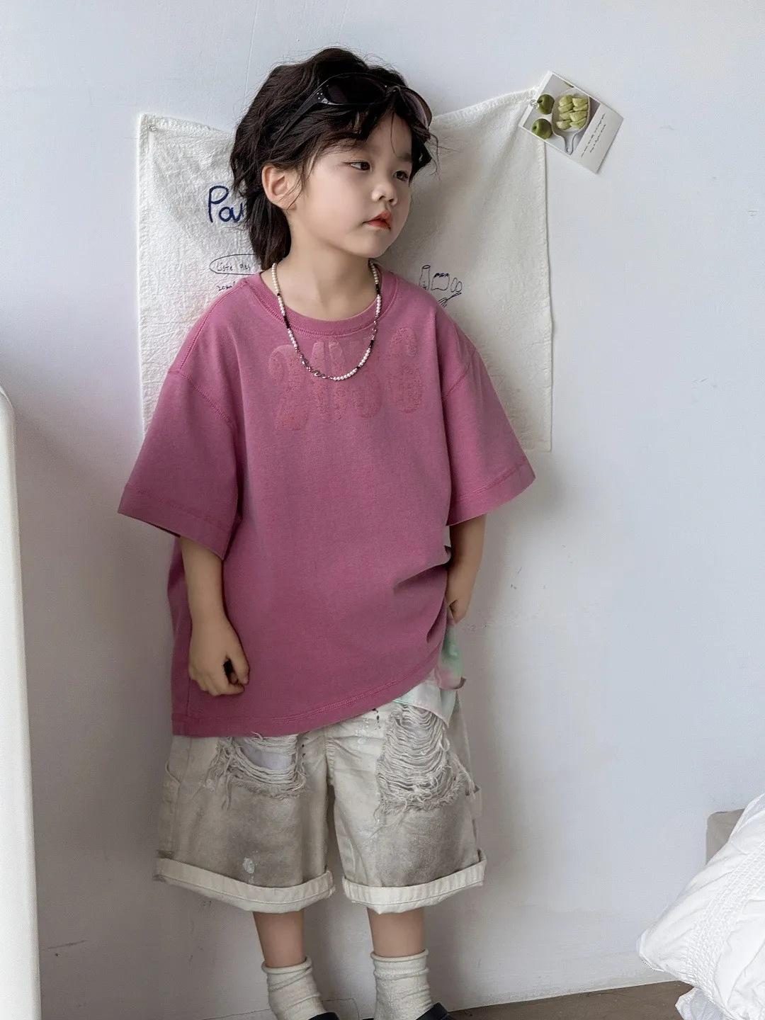 Ropa para Niños Camiseta de Algodón de Manga Corta para Niñas Tops de Verano para Niños Suelta Estilo Nuevo para Bebés Niños Verano Media Manga