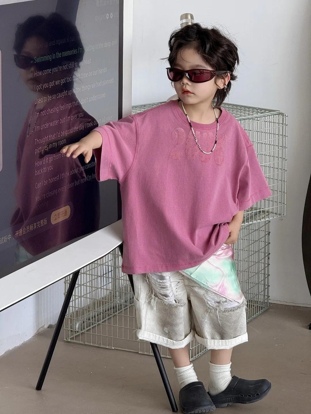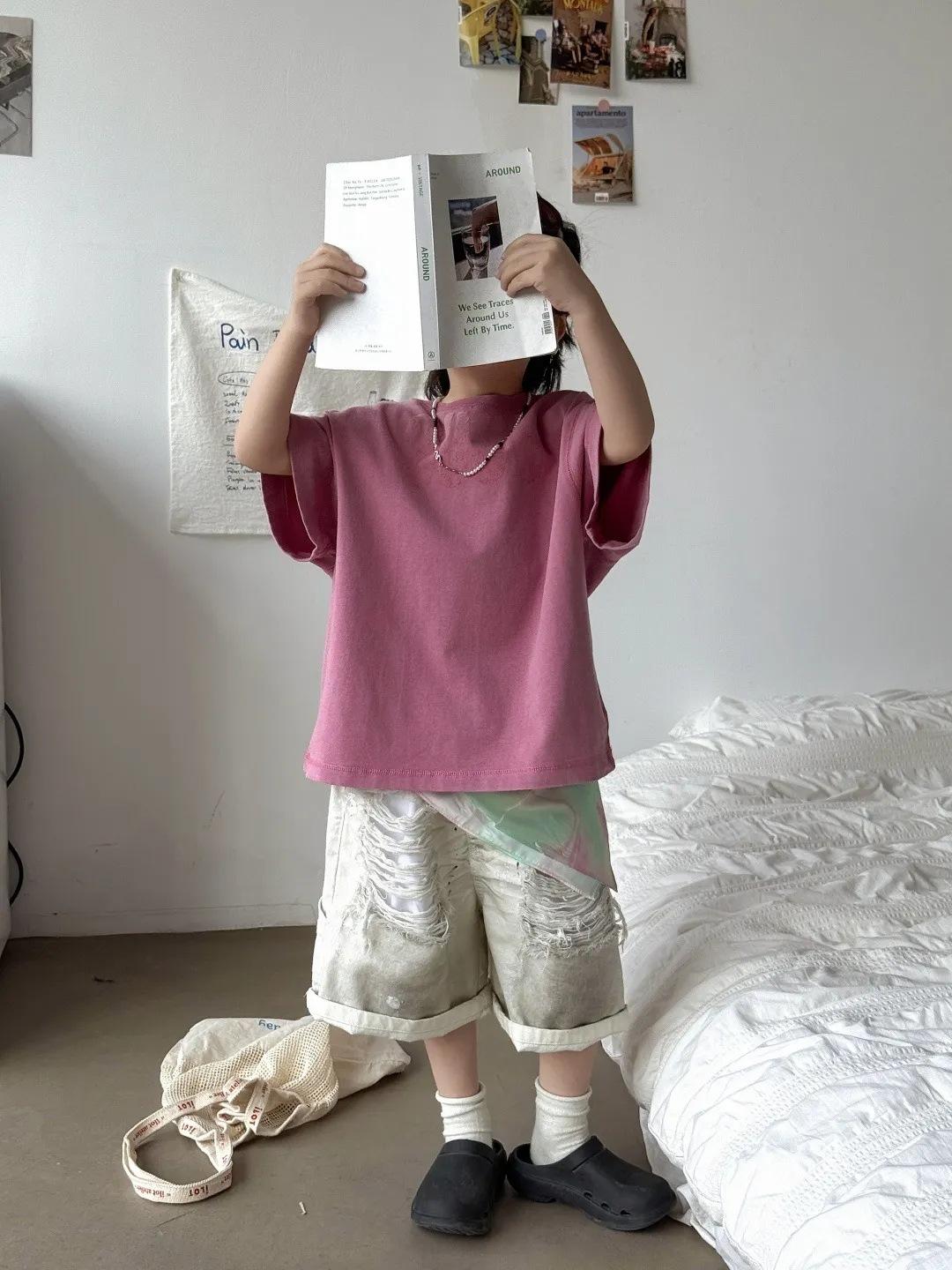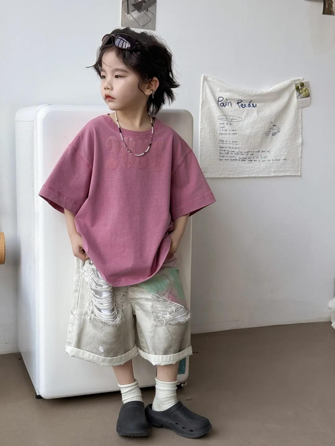 Ropa para Niños Camiseta de Algodón de Manga Corta para Niñas Tops de Verano para Niños Suelta Estilo Nuevo para Bebés Niños Verano Media Manga