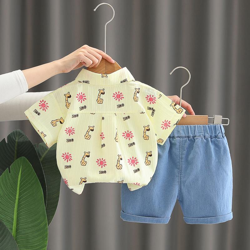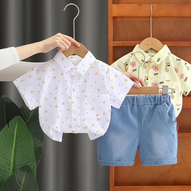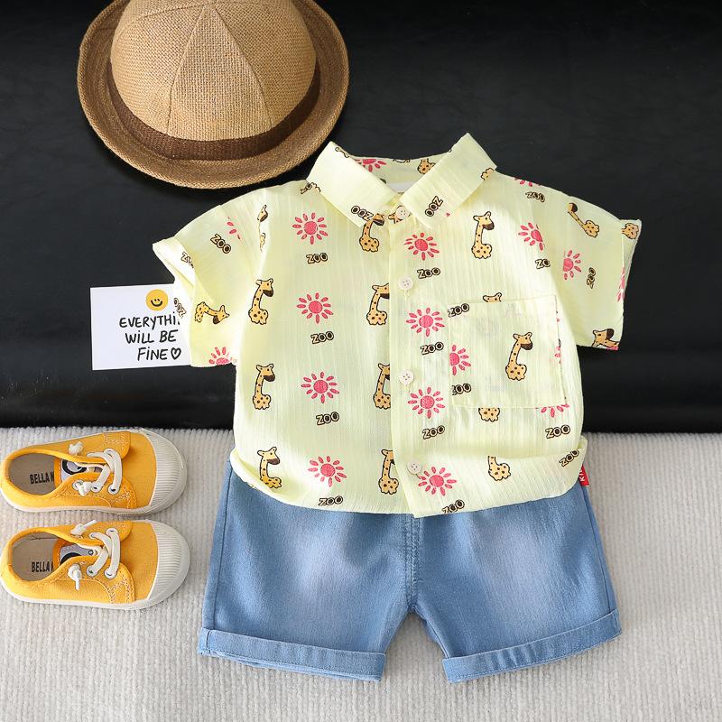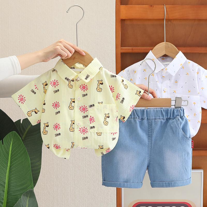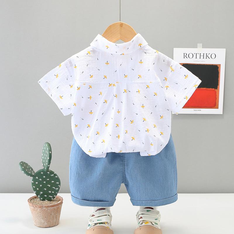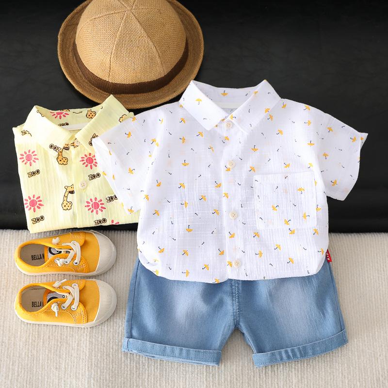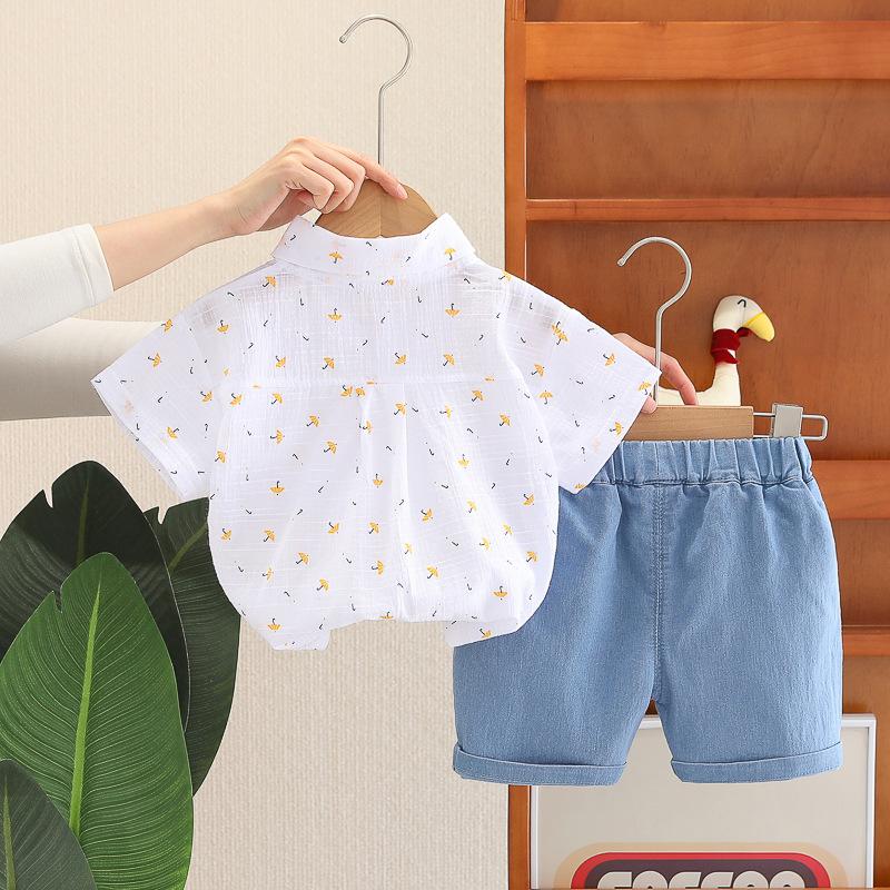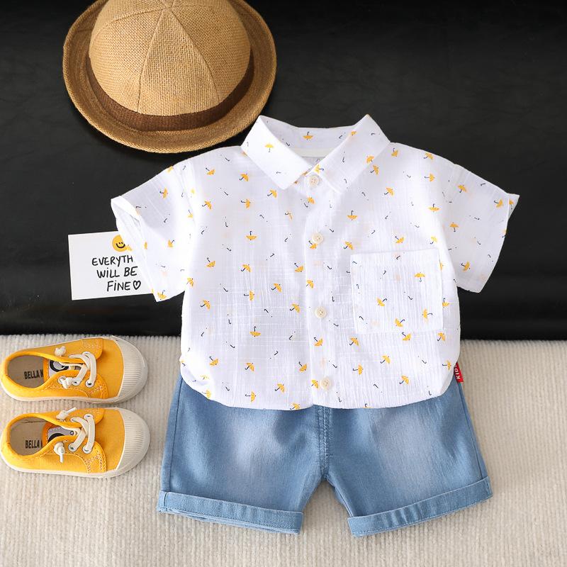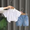 Traje de Verano de Manga Corta para Niño 2025 Nuevo Moderno Transfronterizo Ropa Infantil Estilo Coreano Camisa de Manga Corta para Bebé Conjunto de Dos Piezas Venta al por Mayor