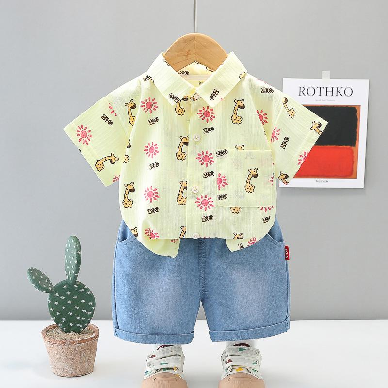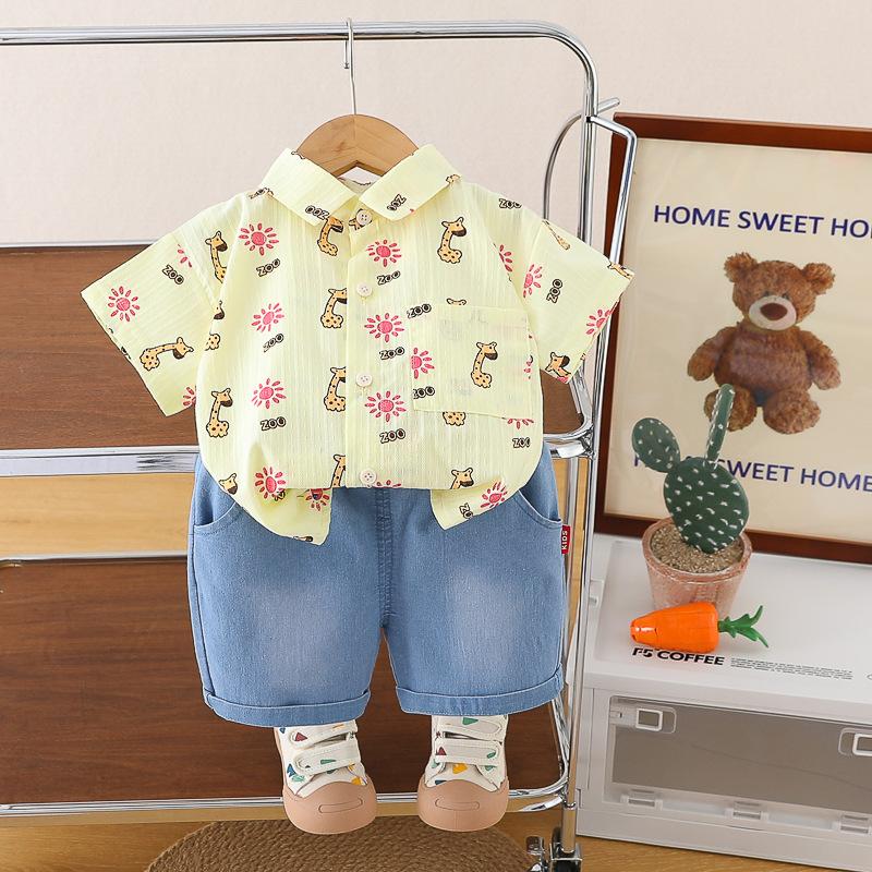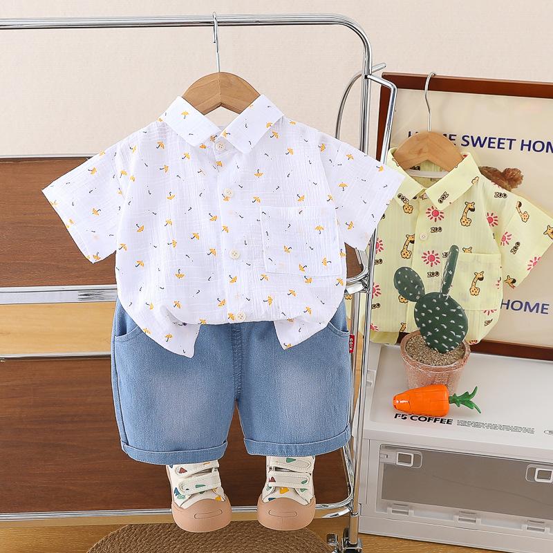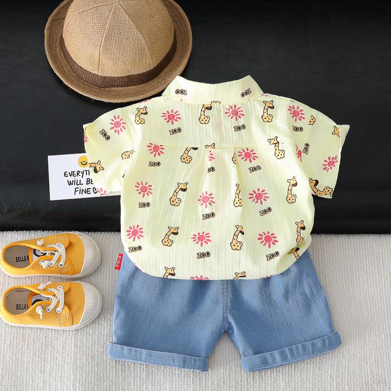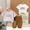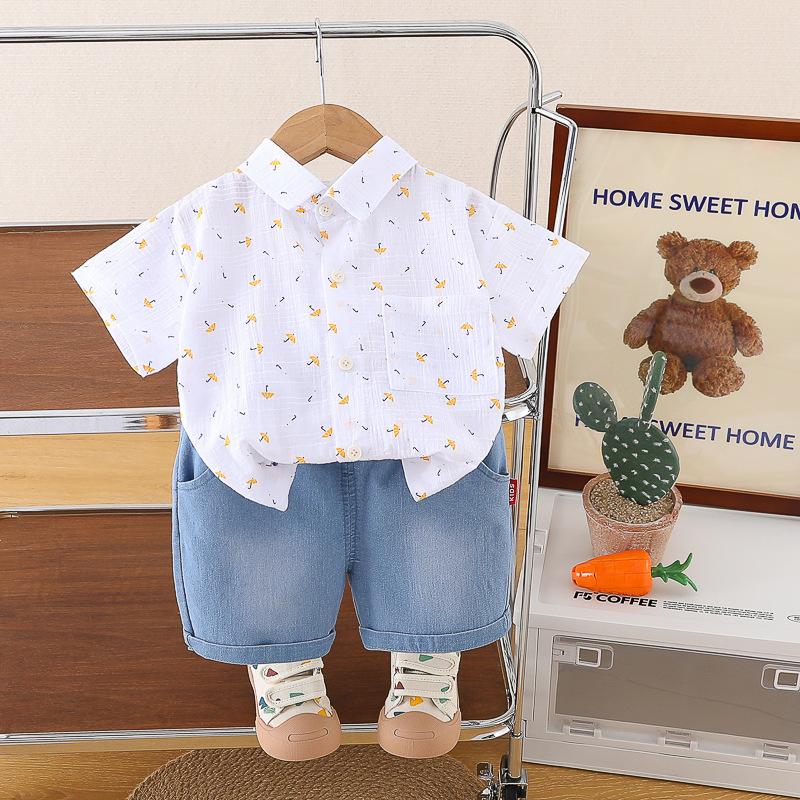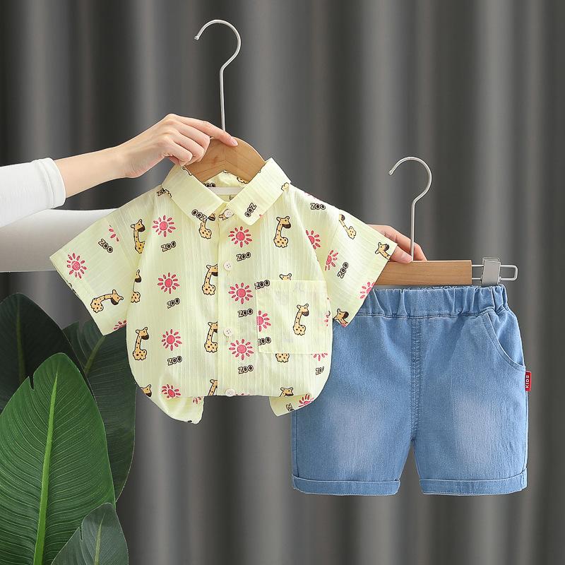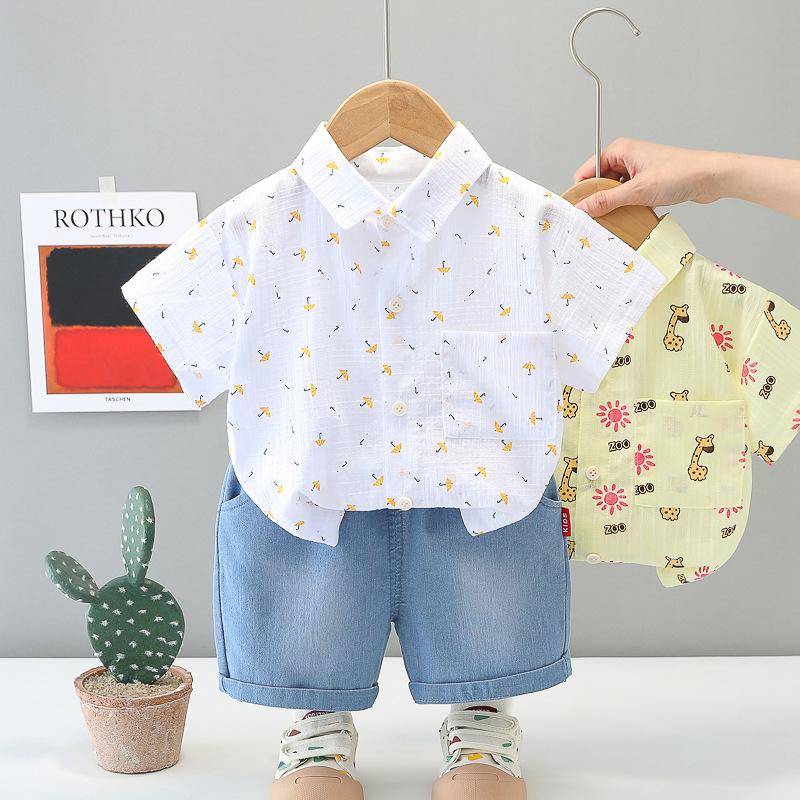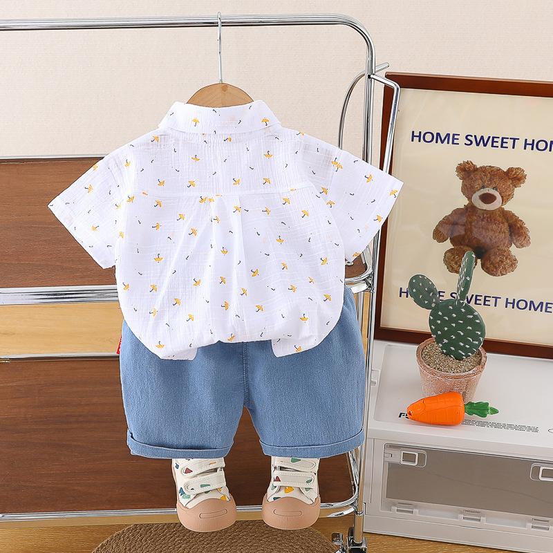 Traje de Verano de Manga Corta para Niño 2025 Nuevo Moderno Transfronterizo Ropa Infantil Estilo Coreano Camisa de Manga Corta para Bebé Conjunto de Dos Piezas Venta al por Mayor