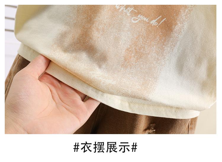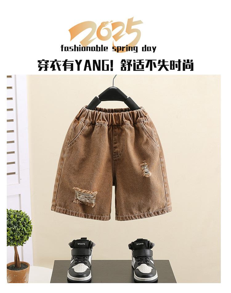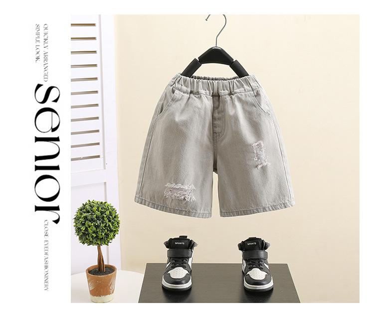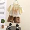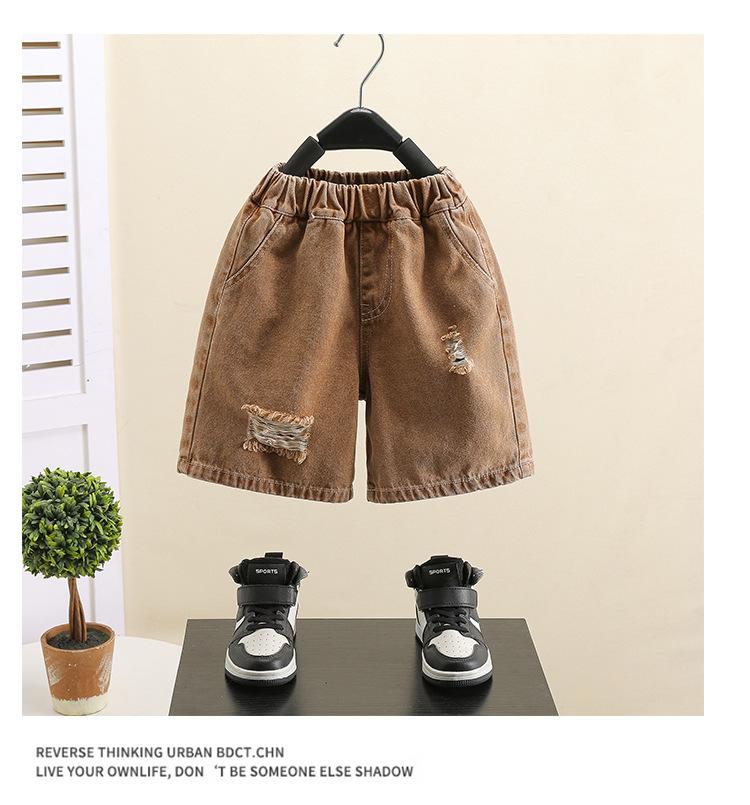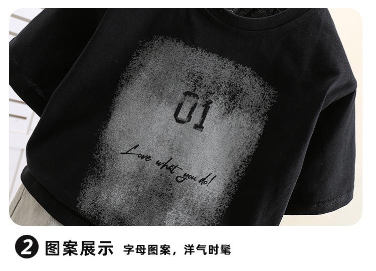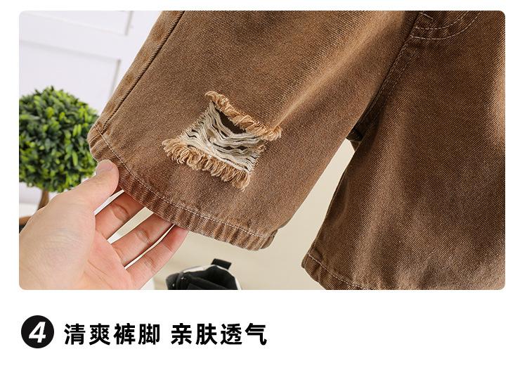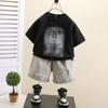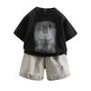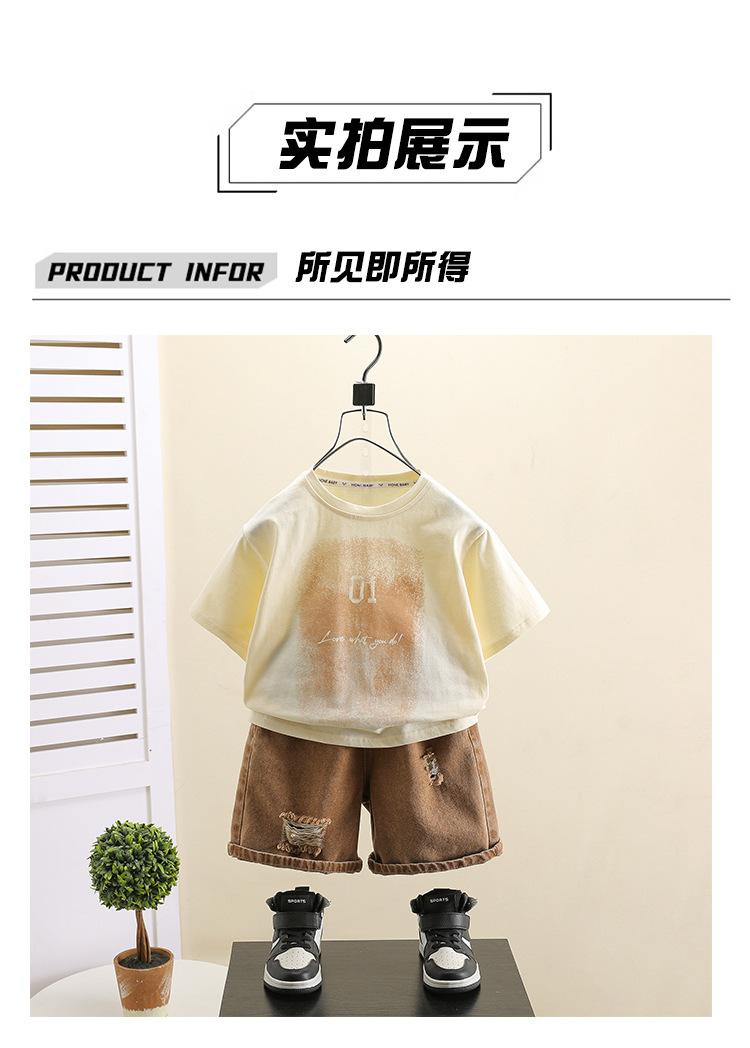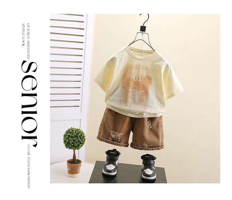 Traje de verano para niño de manga corta de algodón para verano, delgado, guapo, moderno, shorts de mezclilla, conjunto casual de dos piezas para niños