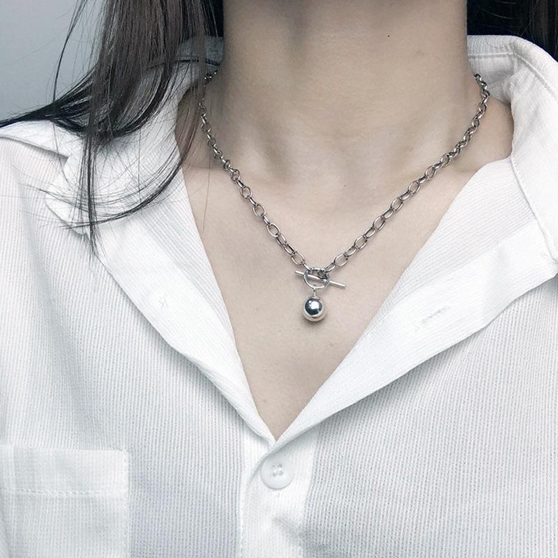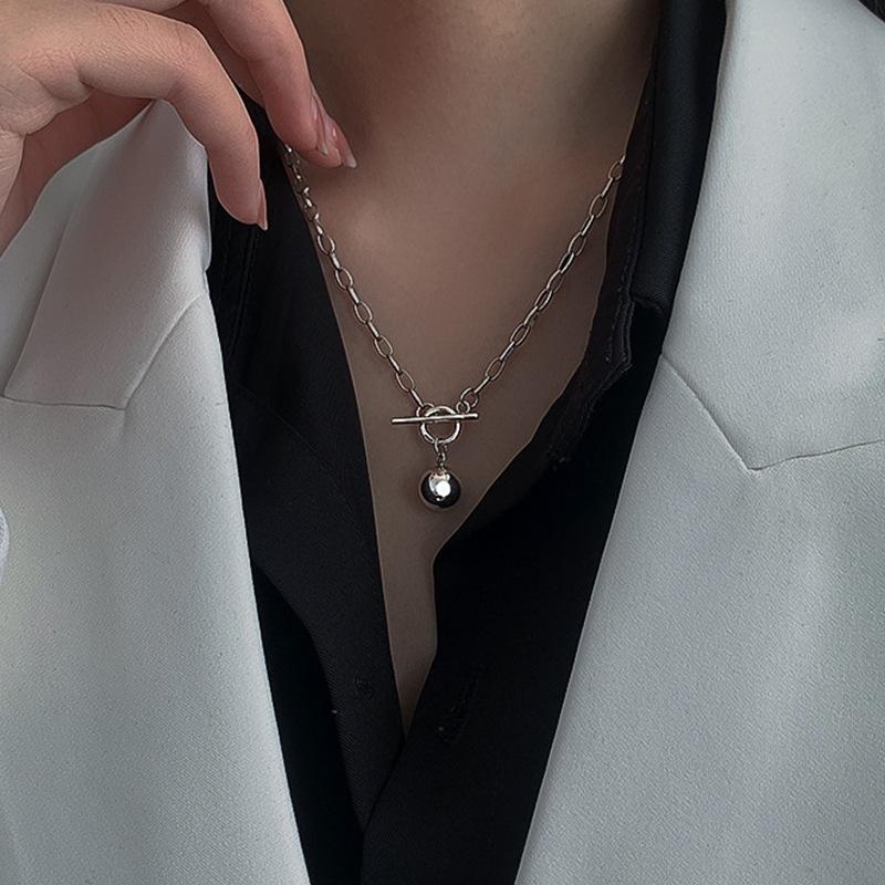 Joyería Europea y Americana Creativa Elegante Geométrica Hebilla Ot Cadena Clavícula Verano Nuevo Colgante de Cuentas de Bolas Collar de Pareja