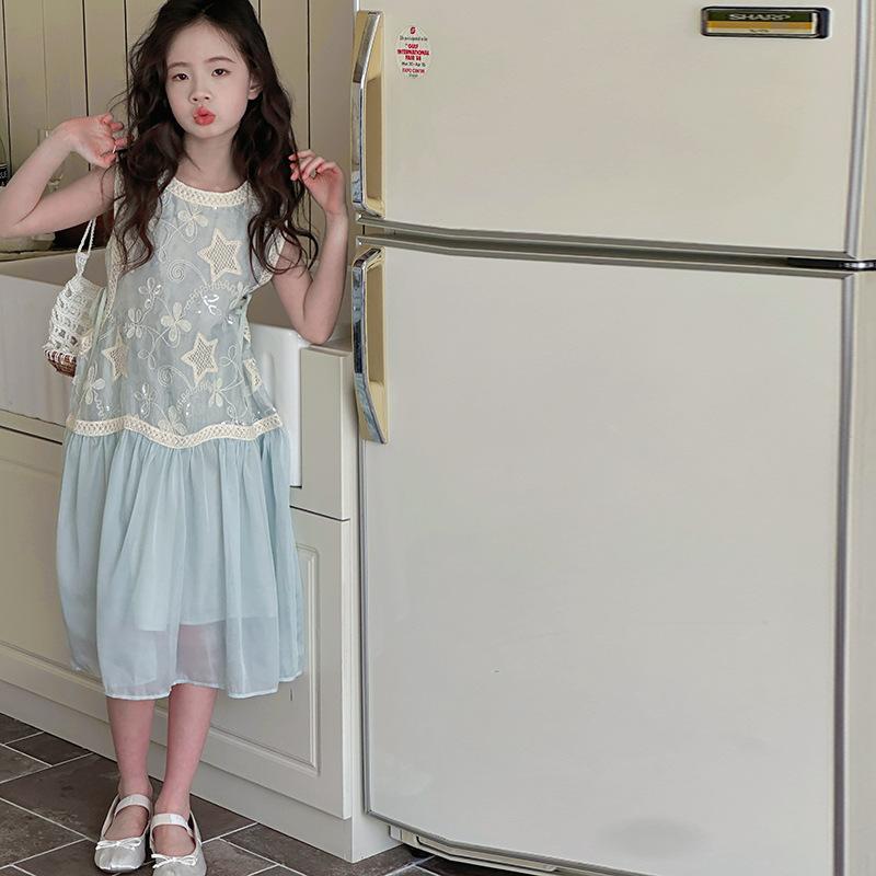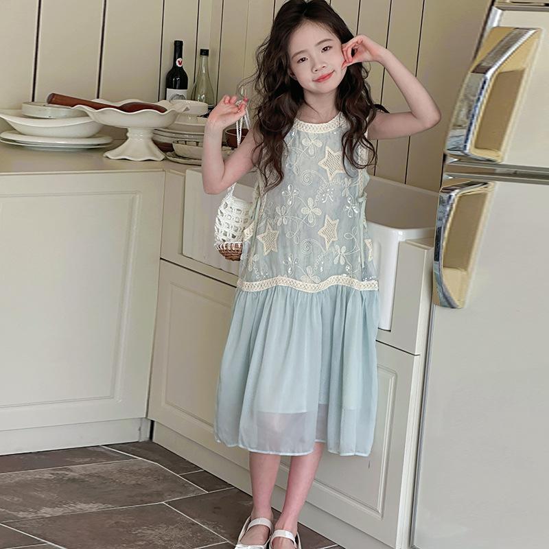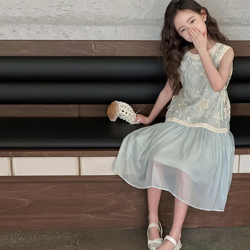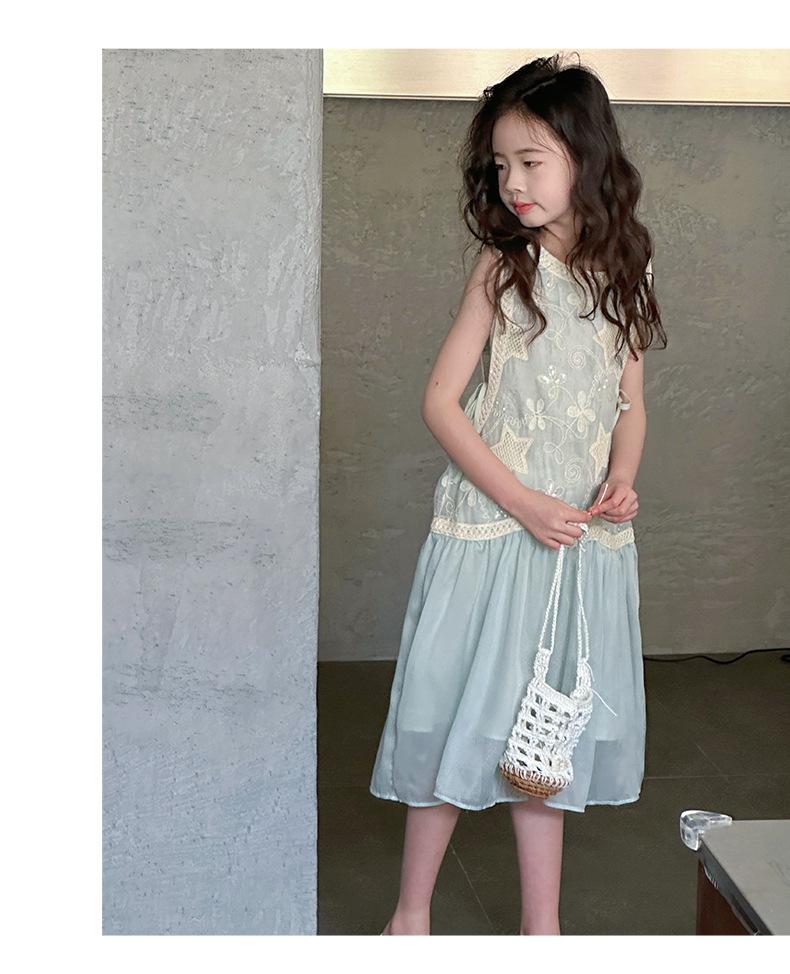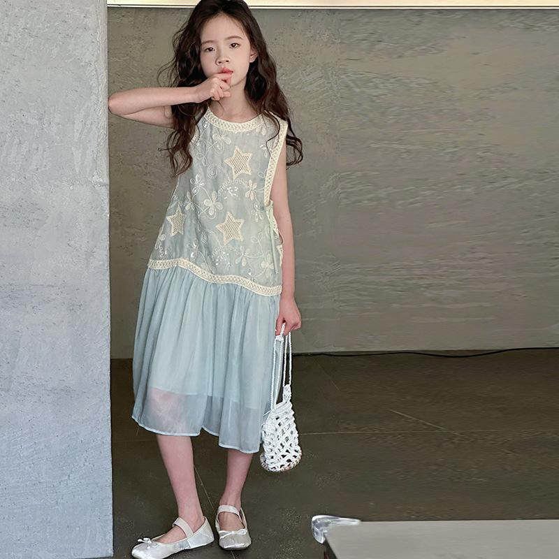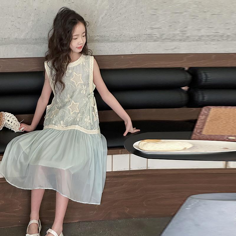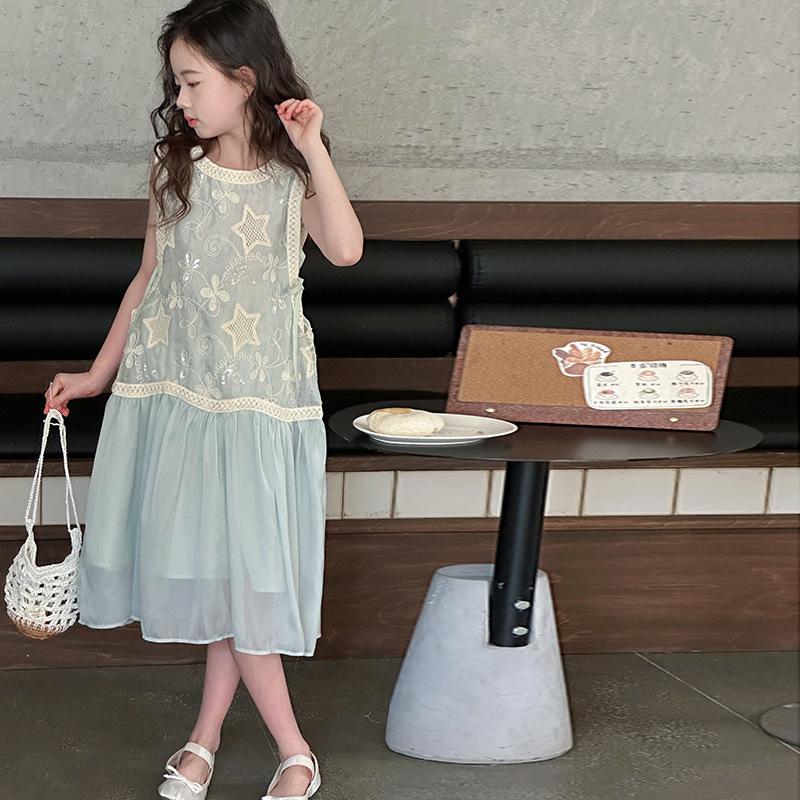 Verano Nuevo Vestido sin Mangas para Niñas Ropa para Niños Ropa de Moda para Niñas Elegante Vestido de Princesa Vestido Bordado Falda