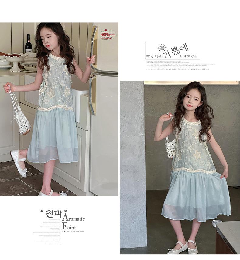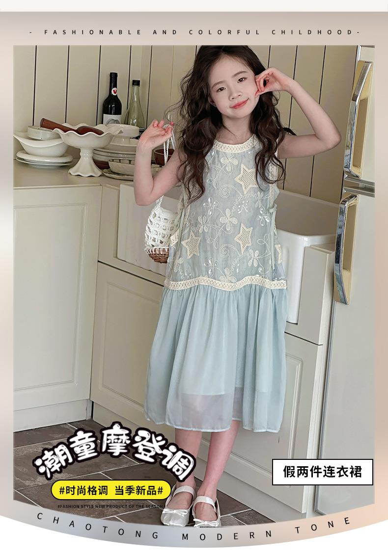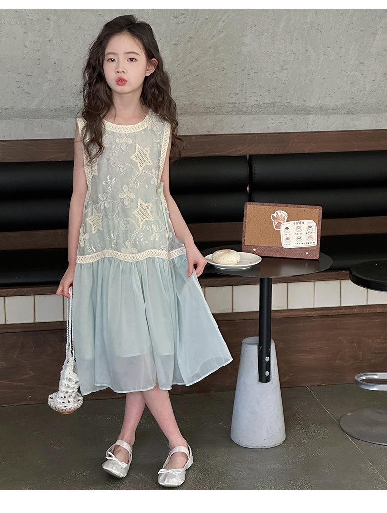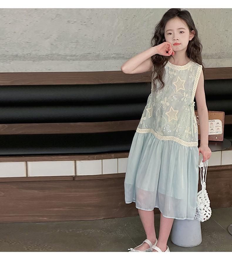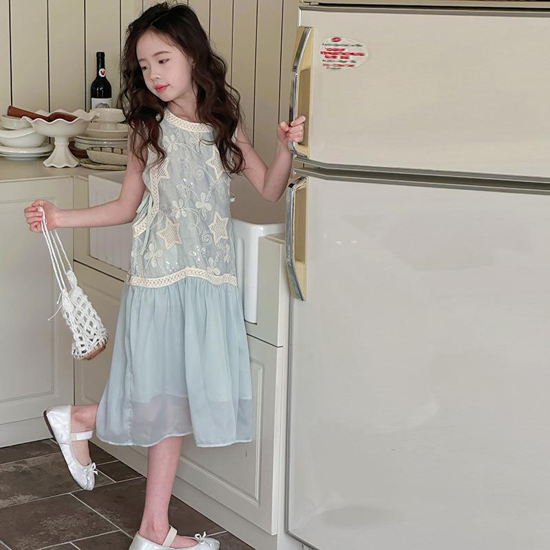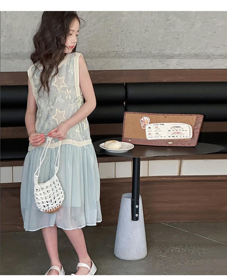Verano Nuevo Vestido sin Mangas para Niñas Ropa para Niños Ropa de Moda para Niñas Elegante Vestido de Princesa Vestido Bordado Falda