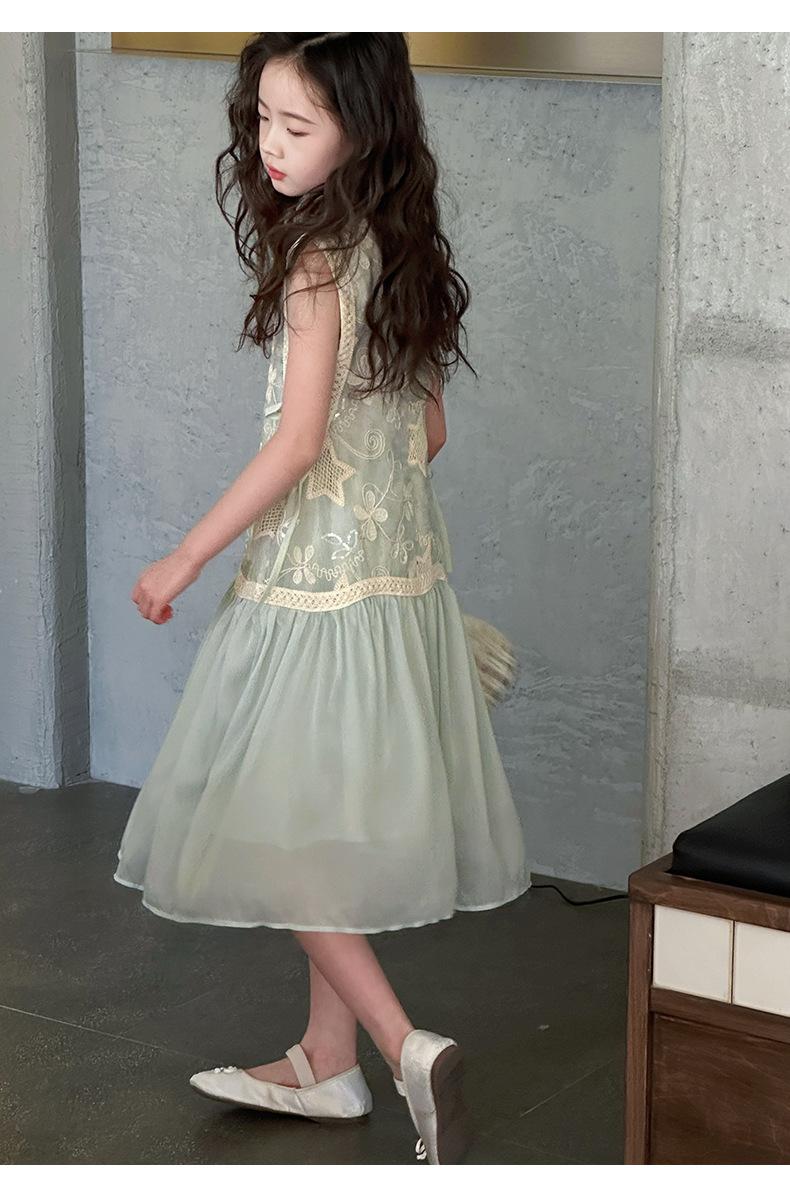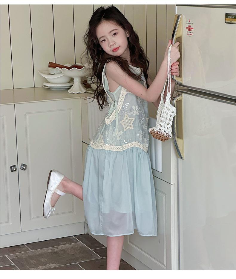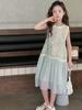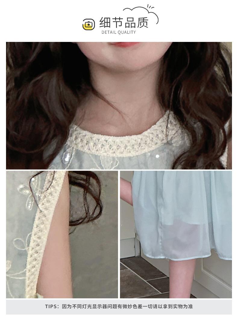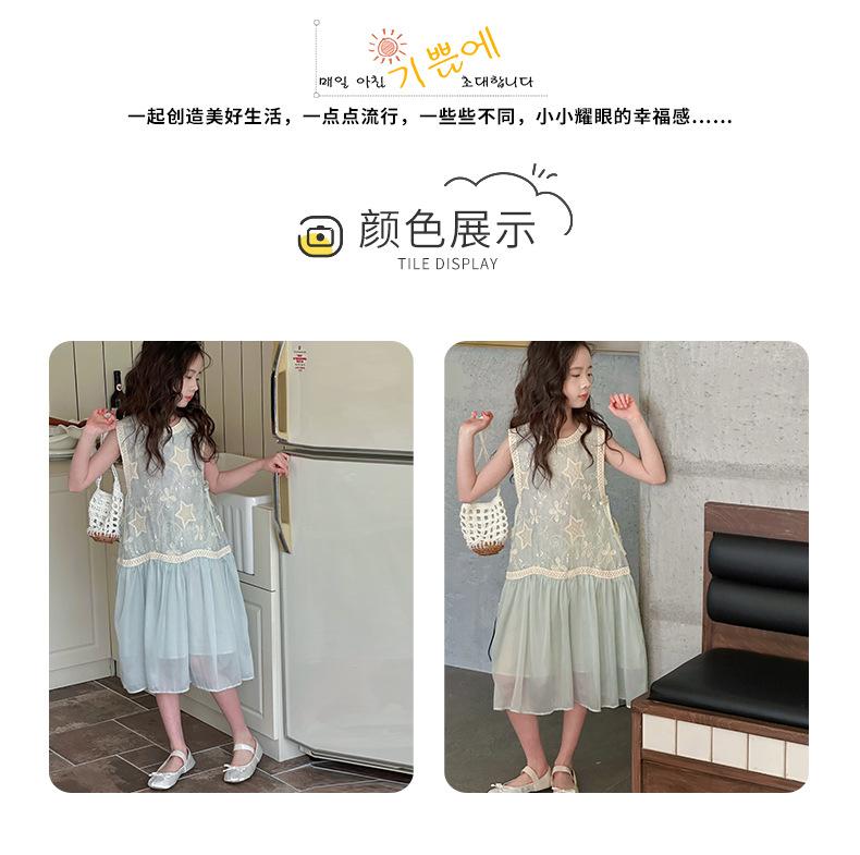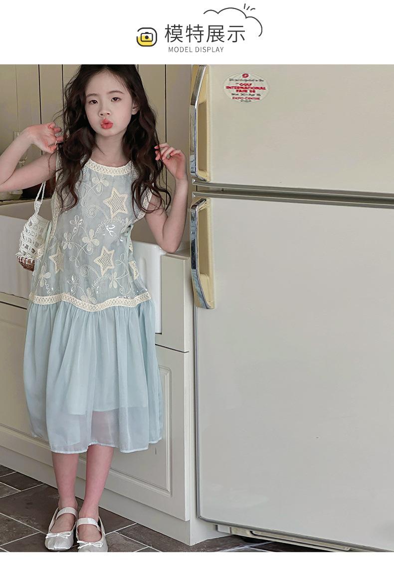 Verano Nuevo Vestido sin Mangas para Niñas Ropa para Niños Ropa de Moda para Niñas Elegante Vestido de Princesa Vestido Bordado Falda