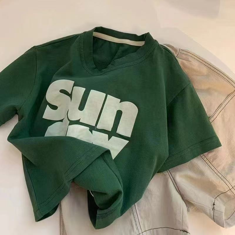 Camiseta de Verano Nueva Elegante para Niños con Letras, Top de Verano para Bebé de Manga Corta Suelto de Media Manga para Niñas