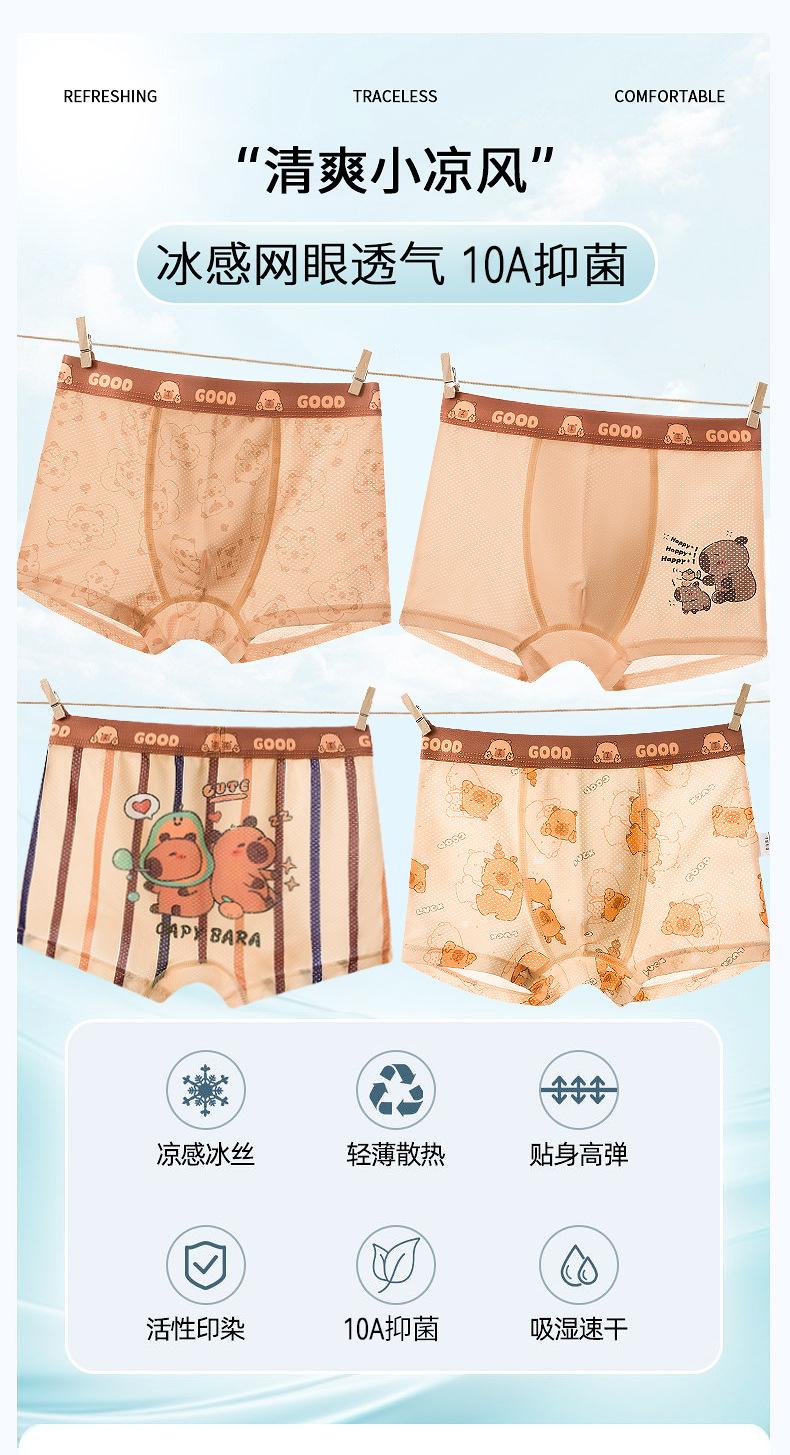Ropa interior para niños Calzoncillos bóxer de seda de hielo para bebé Categoría A Antibacteriano Medianos y Grandes Pantalones cortos para niños Pantalones de dibujos animados supersuaves