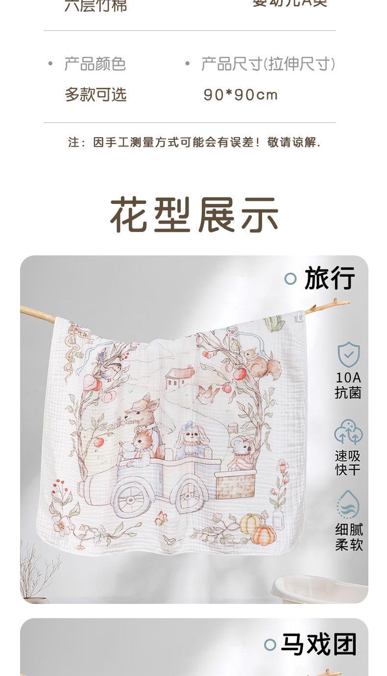 Toalla de baño de 6 capas clase A algodón puro toalla de baño grande fibra de bambú dibujos animados bebé suave absorbente seis niños estampado gasa toalla de baño