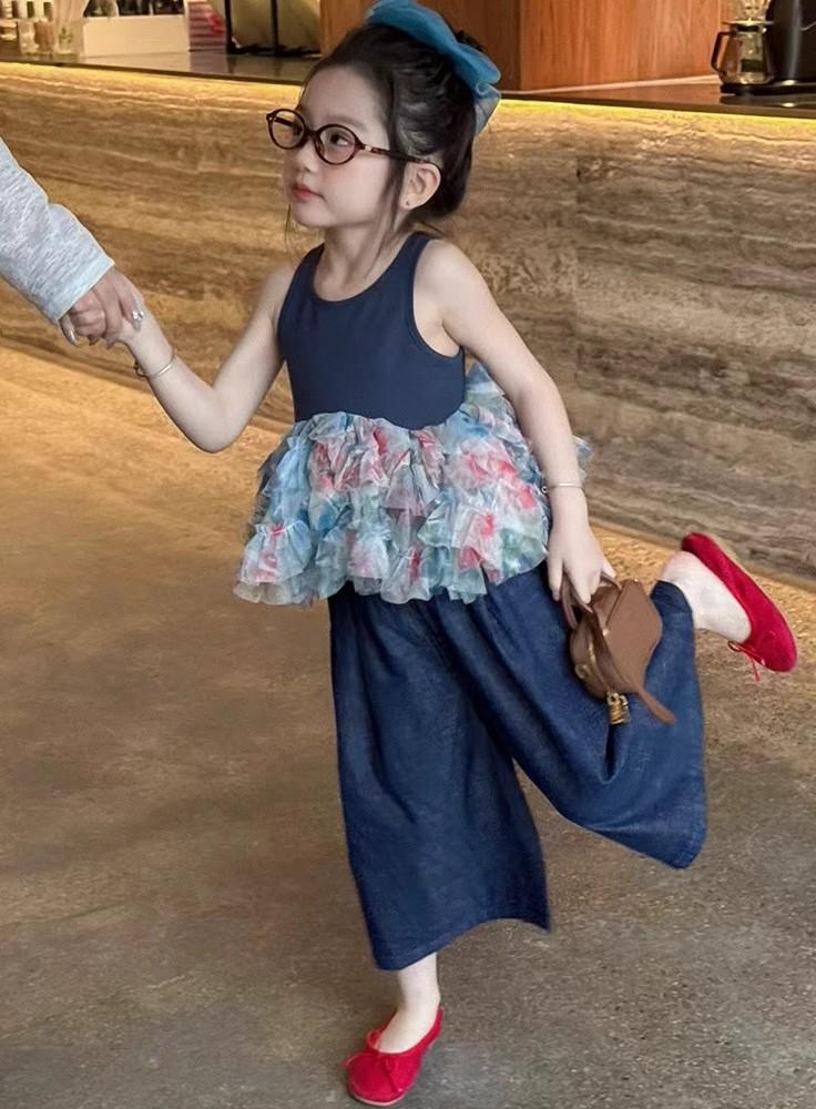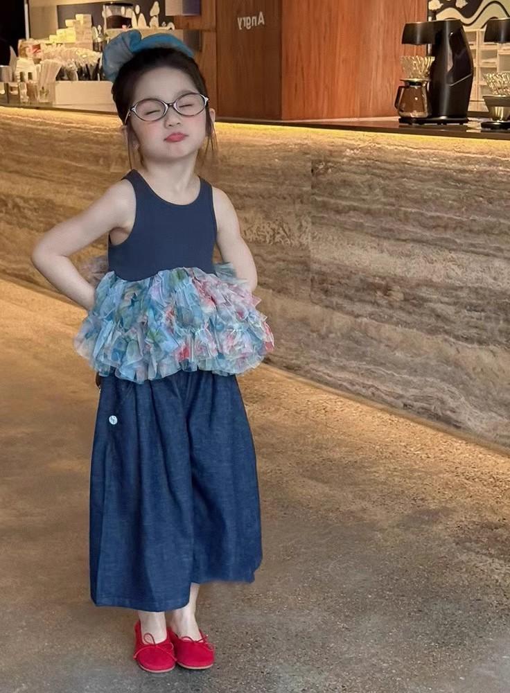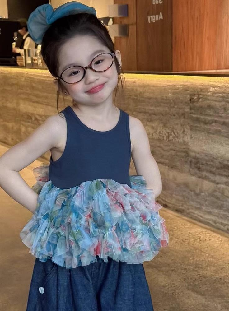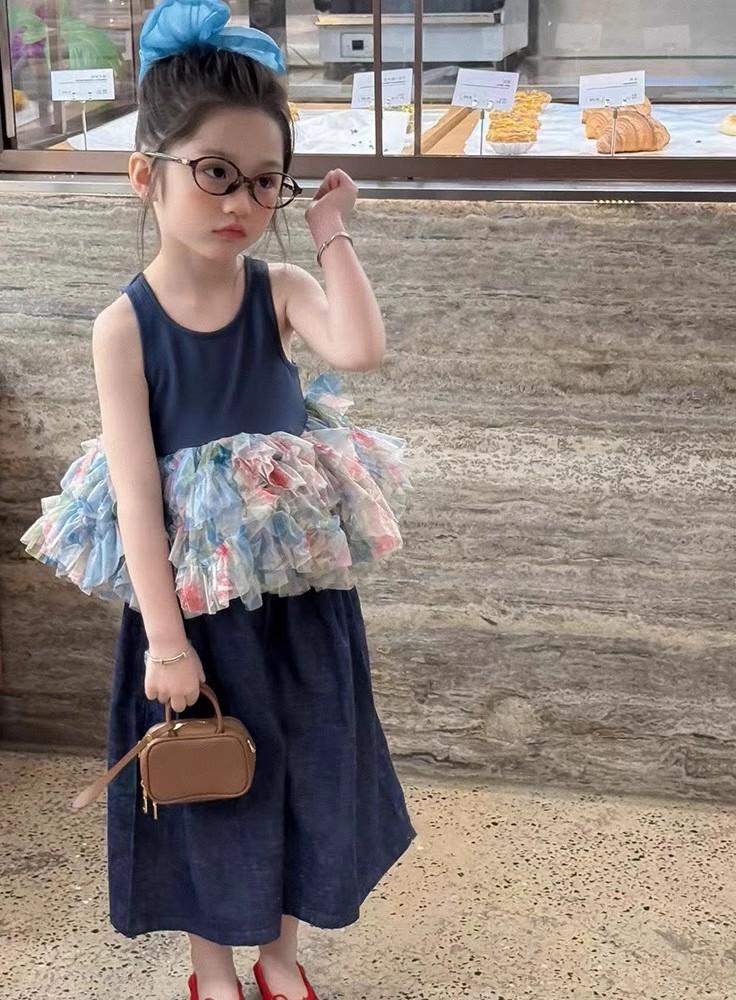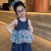 Vestido de Verano para Niñas 2025 Nuevo Estilo Moda Infantil Bebé Sin Mangas Empalme Encaje Falda Tutú Top