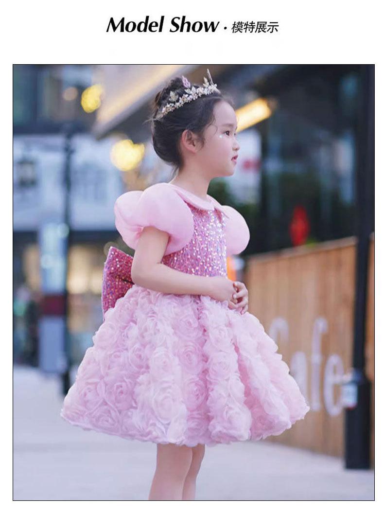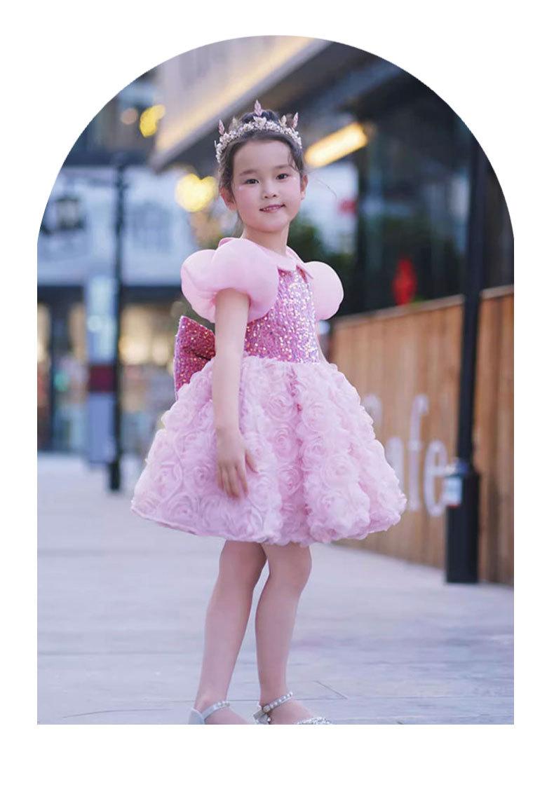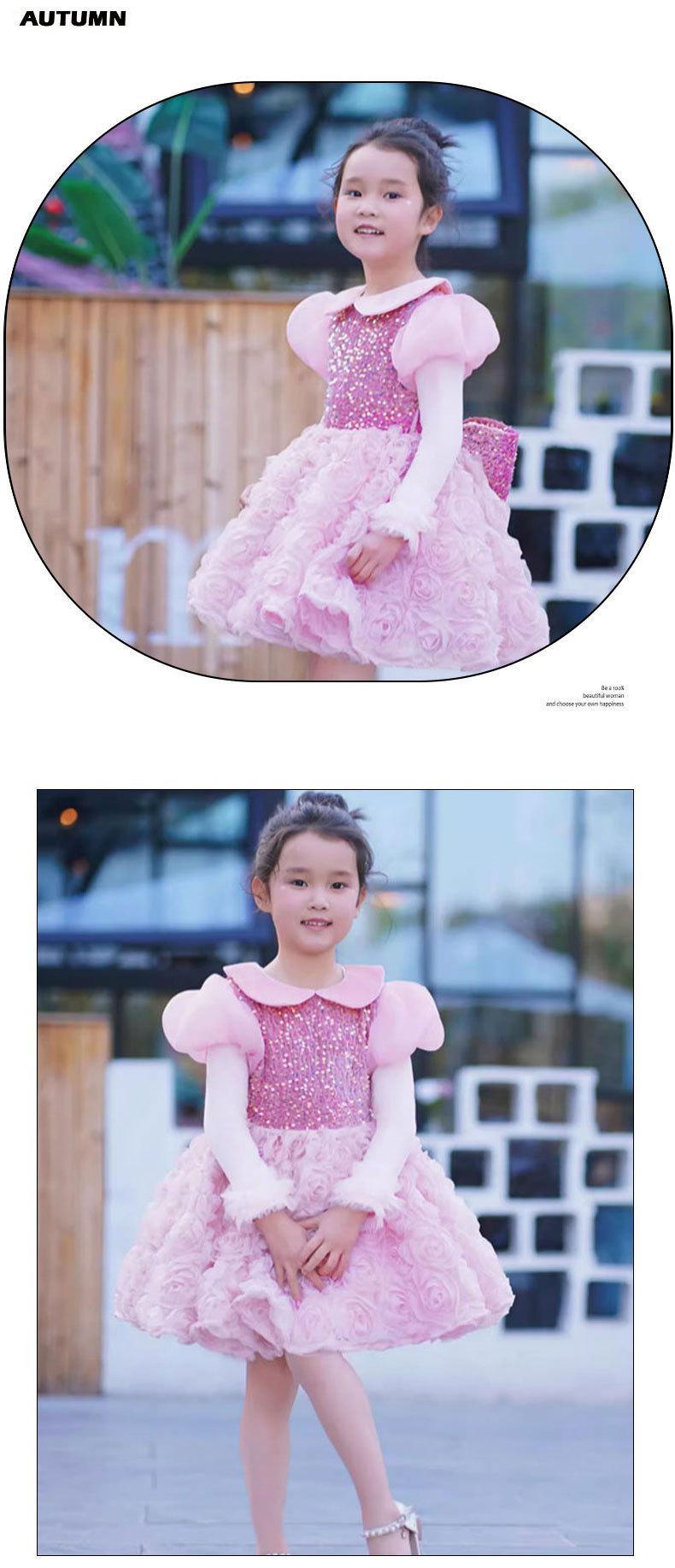 Vestido de Niña Vestido de Princesa Rosa Falda Tutú Anfitriona de Cumpleaños Estilo Pasarela Falda para Niña de las Flores Disfraz para Actuación de Piano
