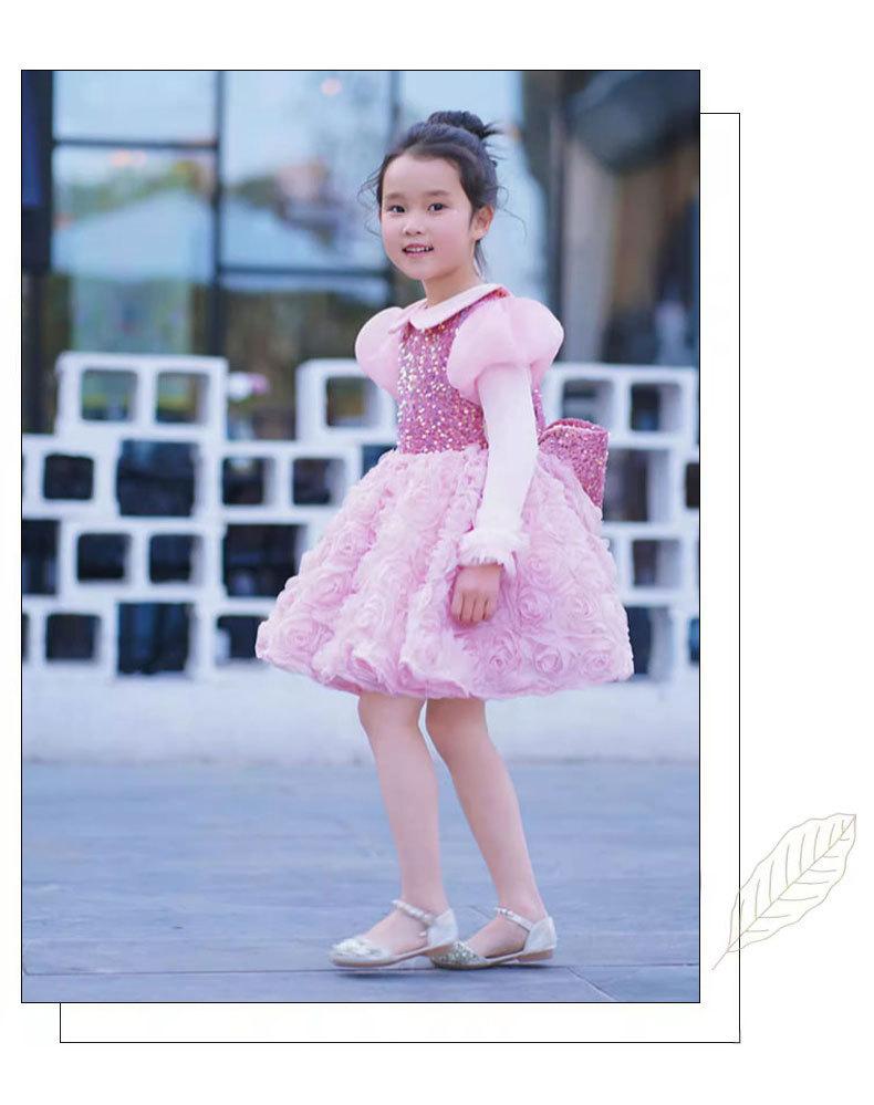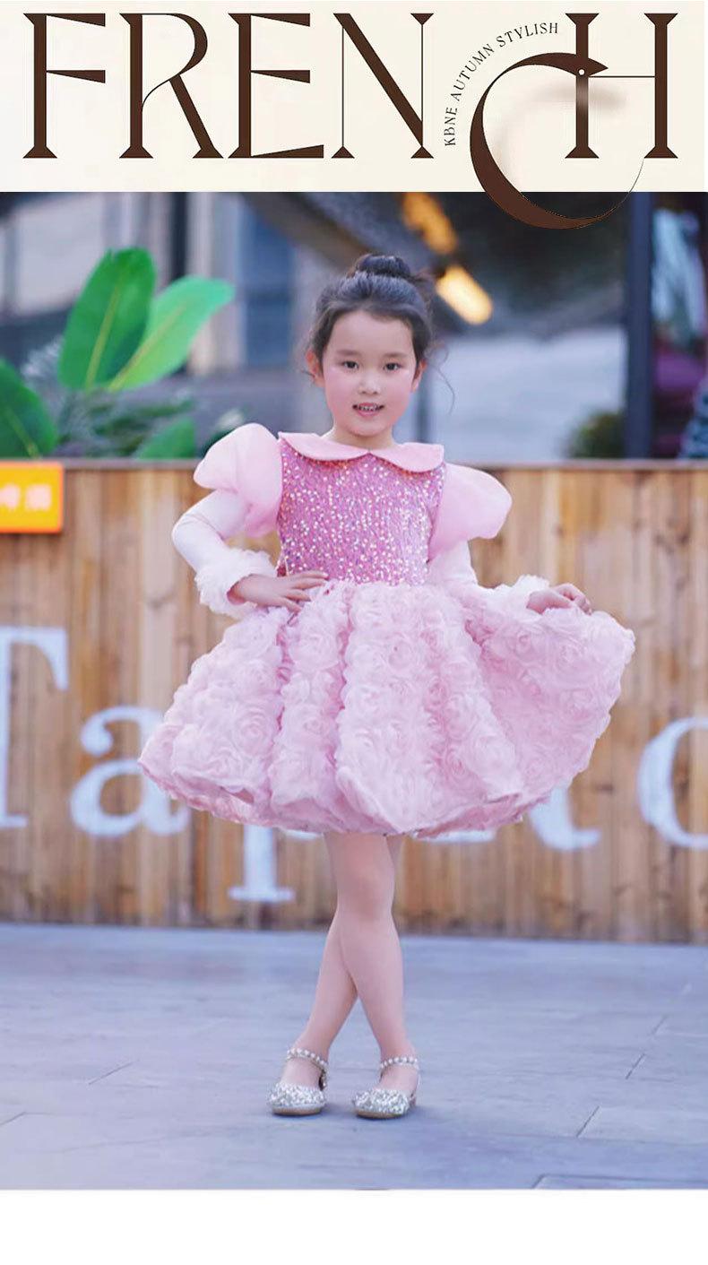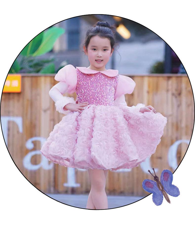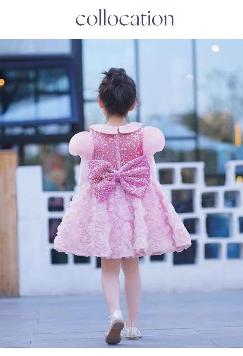 Vestido de Niña Vestido de Princesa Rosa Falda Tutú Anfitriona de Cumpleaños Estilo Pasarela Falda para Niña de las Flores Disfraz para Actuación de Piano