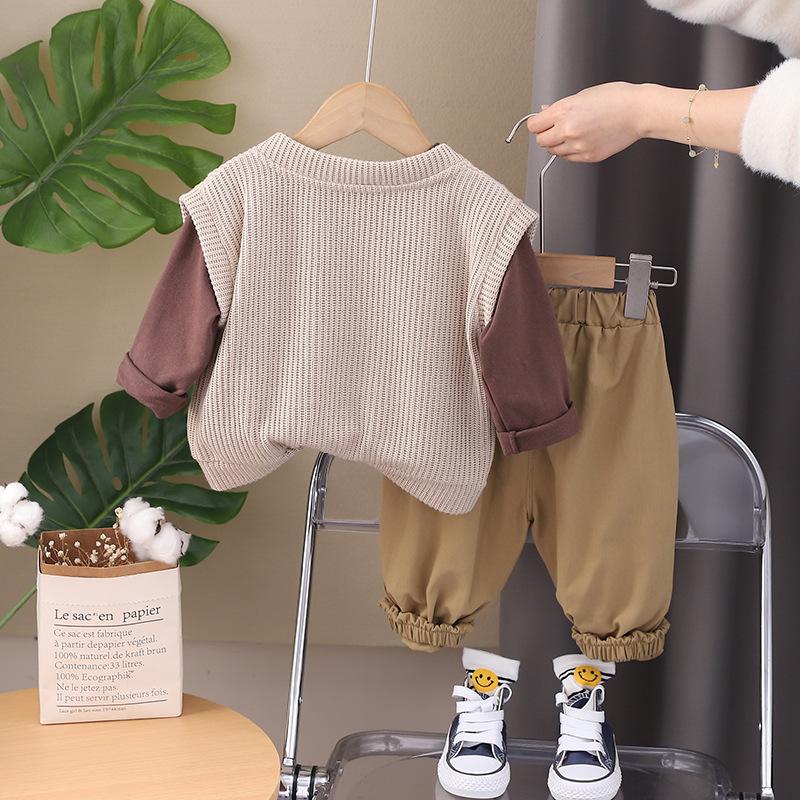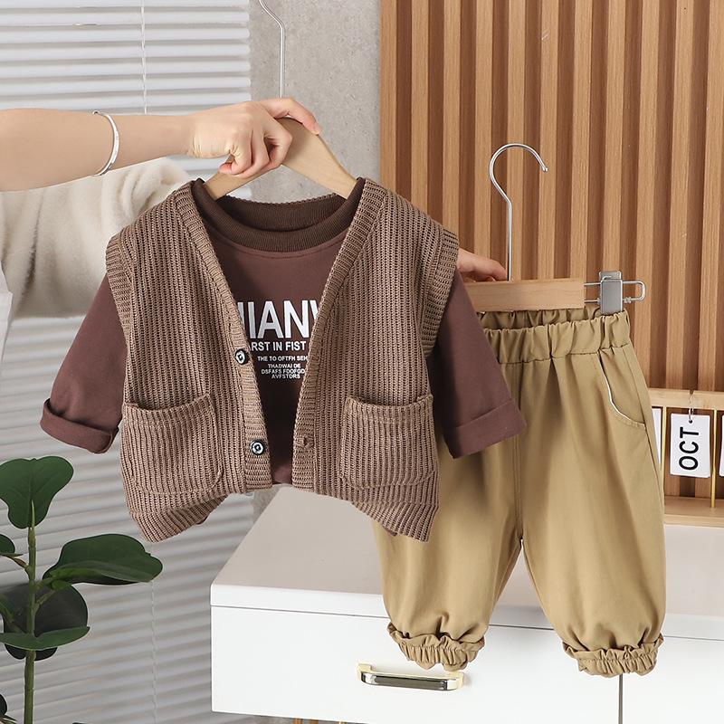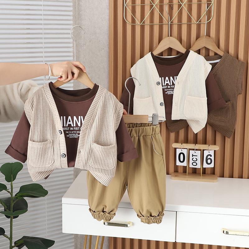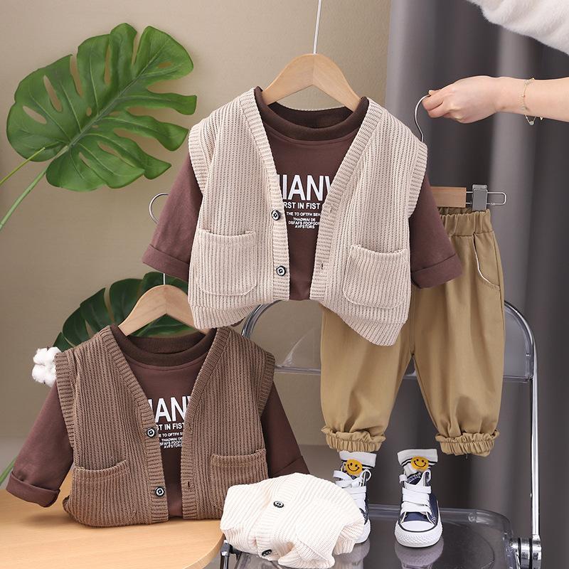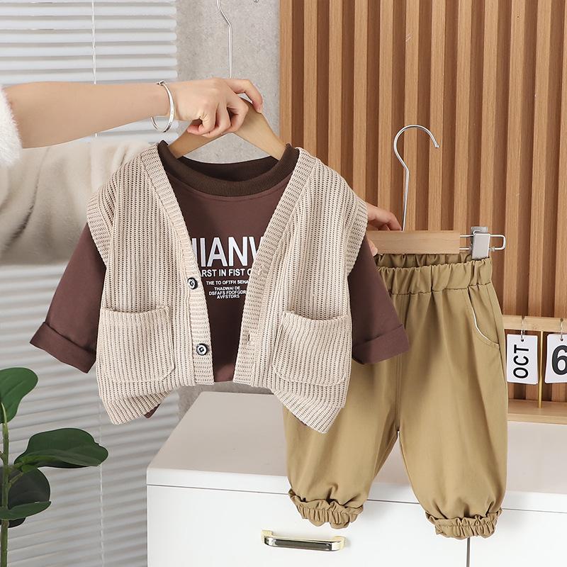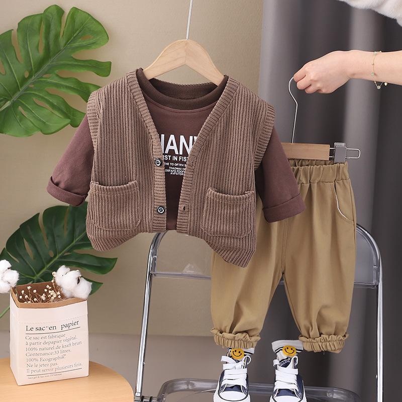 Traje para niño 2024 Nuevo Estilo Occidental para Bebé Ropa para Niños Primavera y Otoño Ropa de Tres Piezas para Bebé Niños Popular en Internet