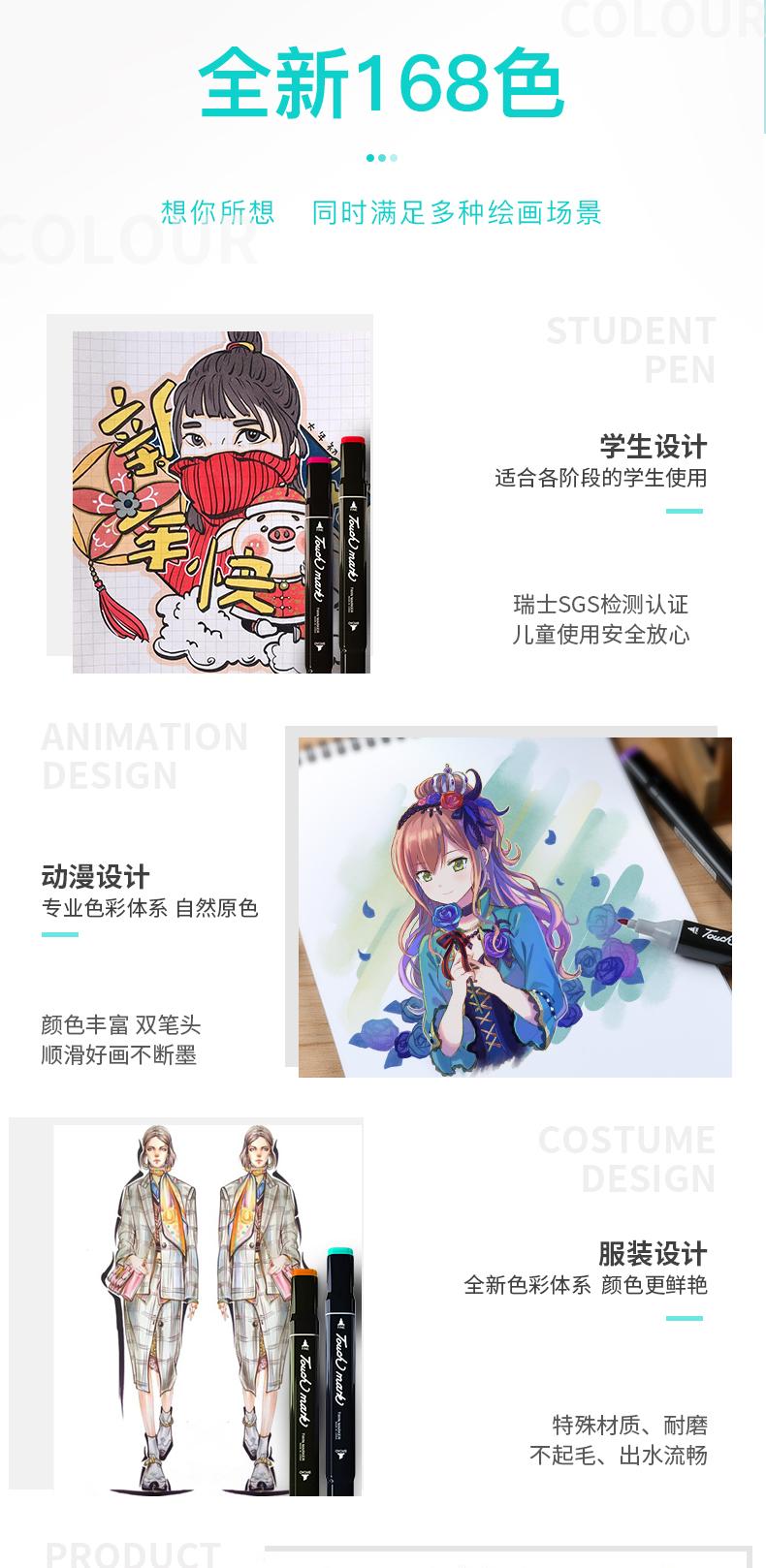 Juego de rotuladores Touchmark para estudiantes de arte, tinta aceitosa especial para animación, doble punta 60/80/120/1