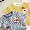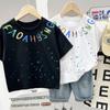 Verano 2025 Estampado de Dibujos Animados Marca de Moda Ropa para Niños y Niñas Versátil Cuello Redondo Casual Manga Corta Algodón Puro Camiseta de Manga Corta