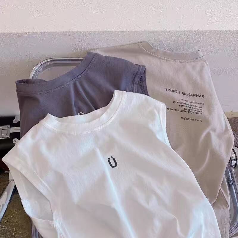 Chaleco de Verano para Niños Estilo Coreano 100% Algodón Ropa Exterior Camiseta sin Mangas Nueva Ropa Infantil Tops Sencillos para Niñas