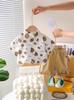 Traje de Verano para Niño 2025 Ropa Nueva para Niños Bebé Verano Delgado Estampado Completo Camisa de Oso Manga Corta Conjunto de Dos Piezas