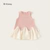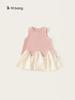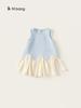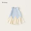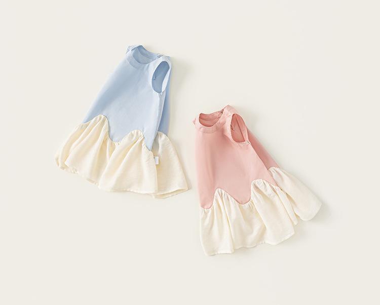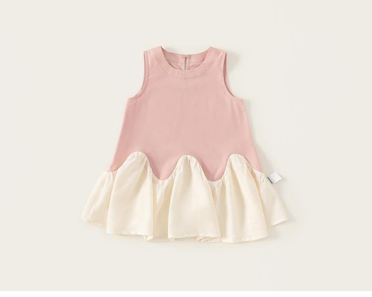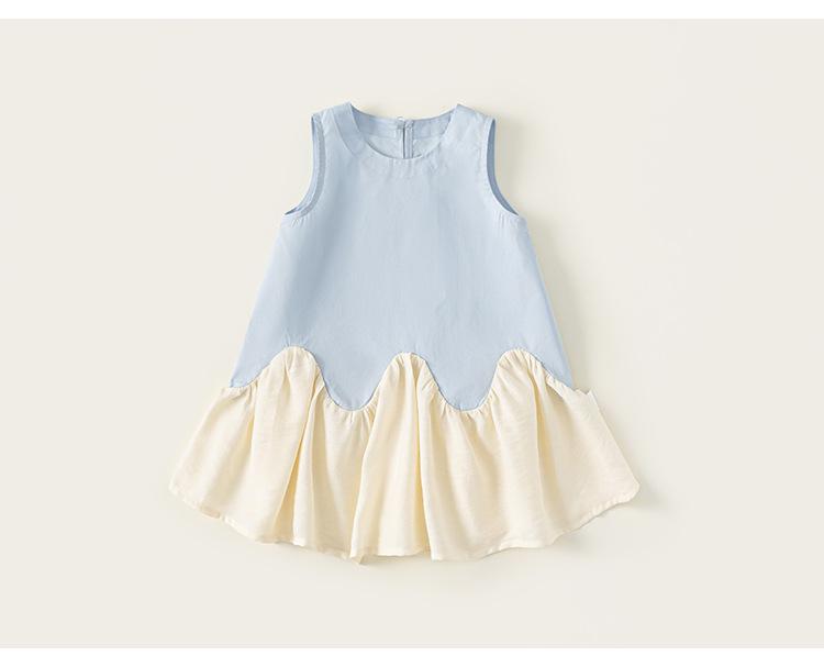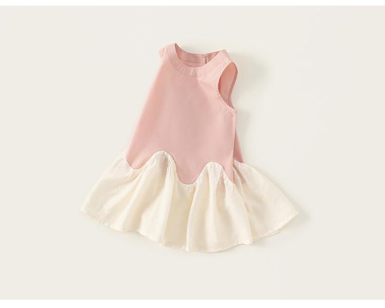 Bangxuan 2025 Nuevo Vestido de Verano para Niñas sin Mangas Vestido para Niñas con Combinación de Colores Falda Línea A Falda Sencilla de Encaje