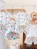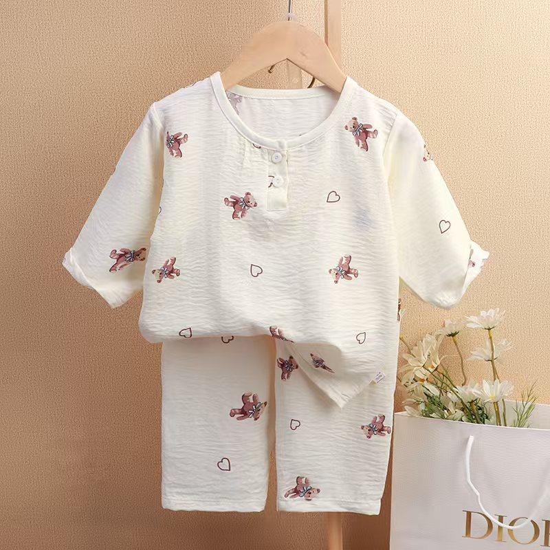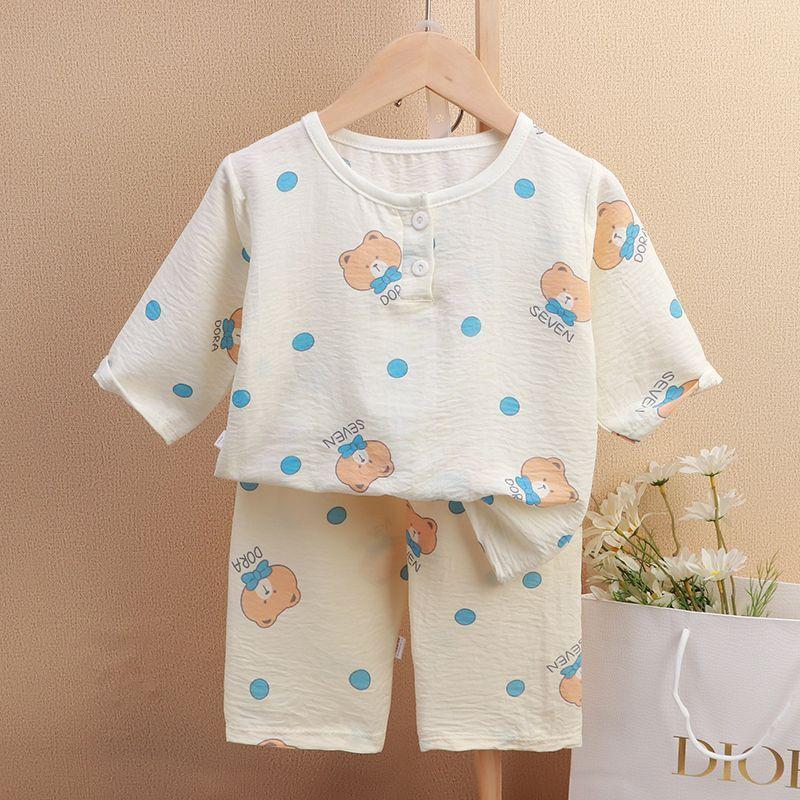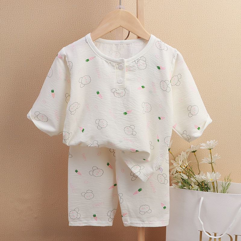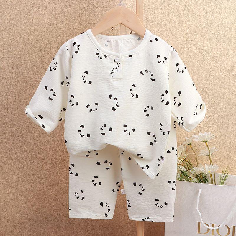 Ropa de Casa para Niños Pantalones Cortos de Manga Corta de Media Longitud Traje de Bebé Ropa Casual de Dos Piezas para Niños y Niñas Pijamas