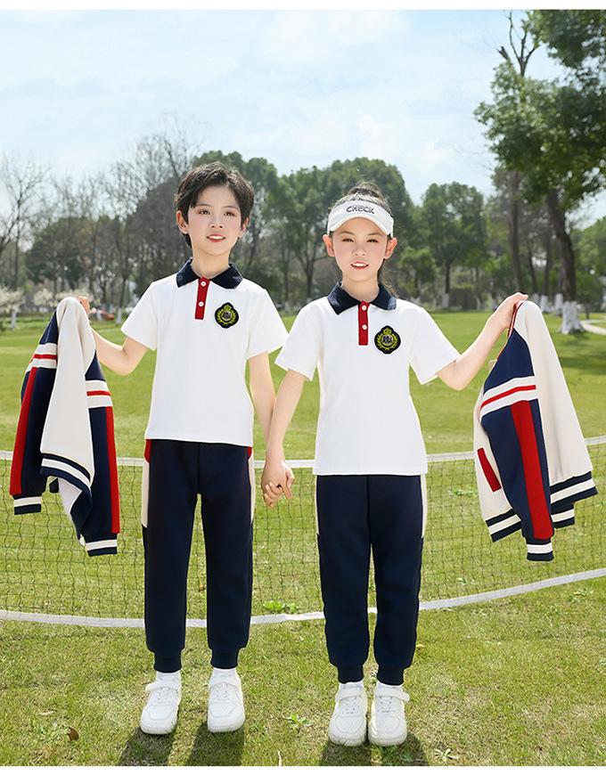 Uniforme de Primaria Conjunto de Cuatro Piezas de Primavera y Otoño Uniforme de Clase para Niños Traje Deportivo Rendimiento Uniforme de Jardín de Niños Manga Corta Verano