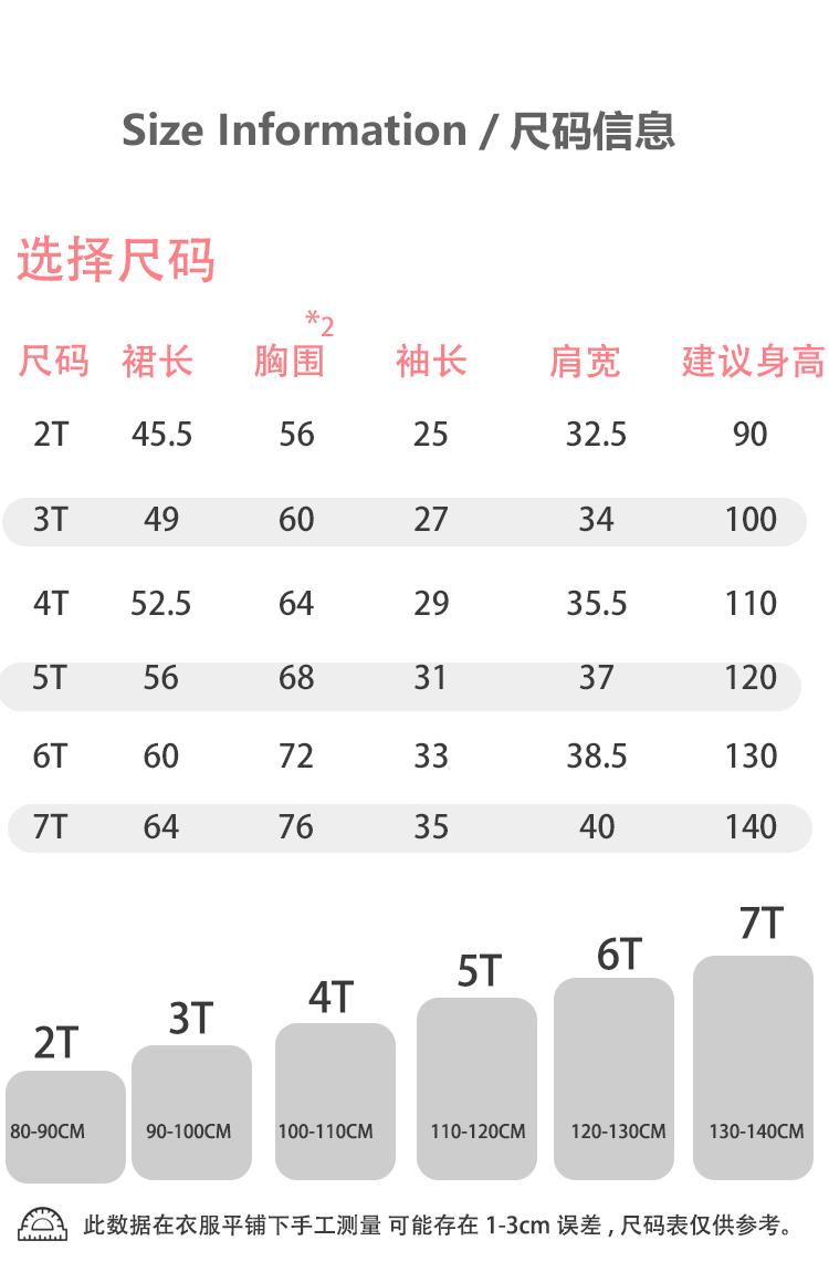 2T/90cm, 3T/100cm, 4T/110cm, 5T/120cm, 6T/130cm, 7T/140cm