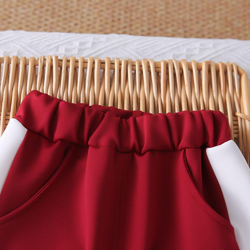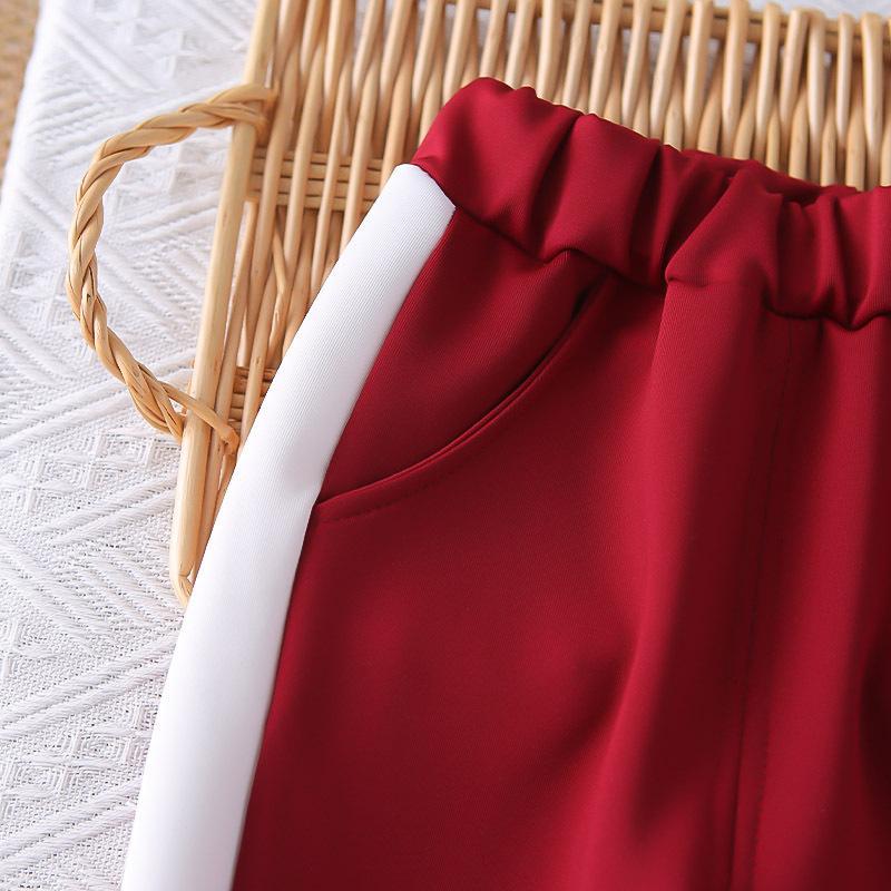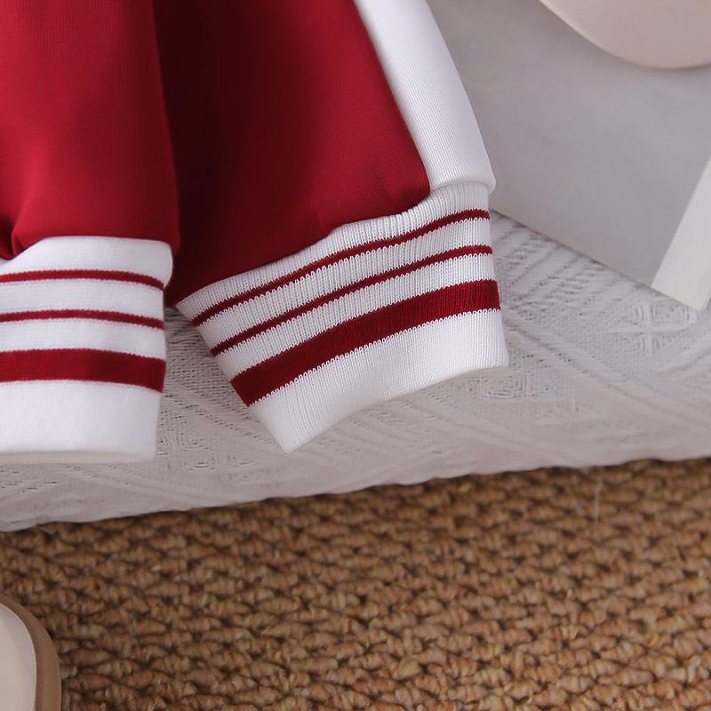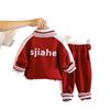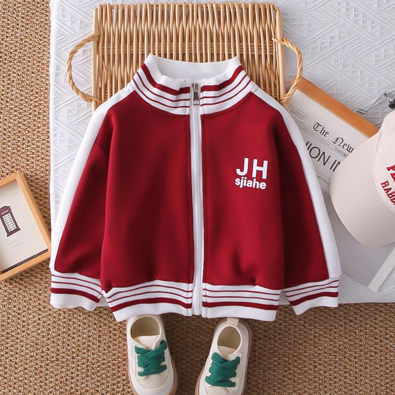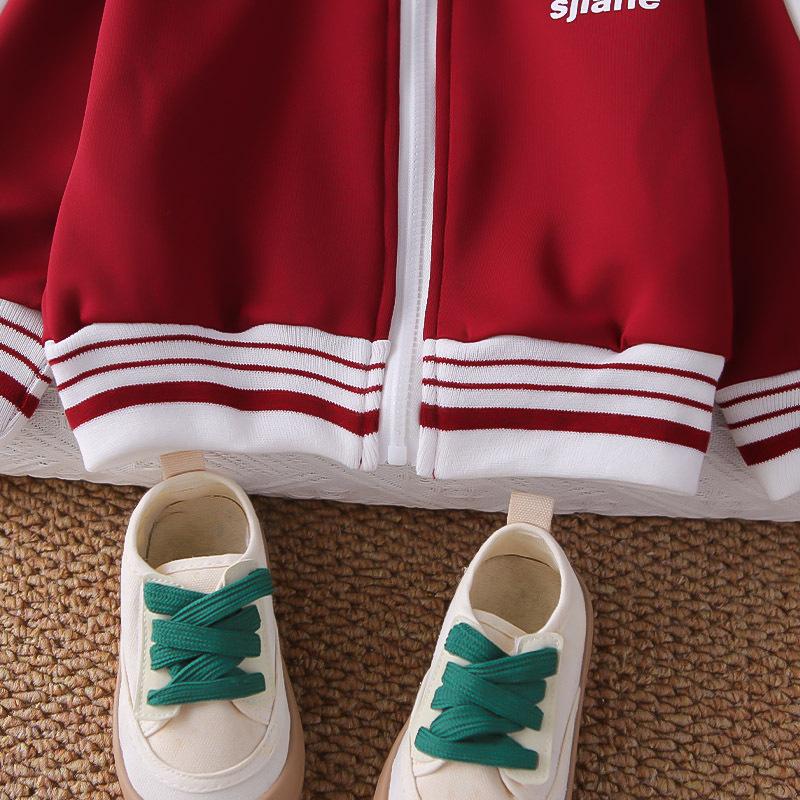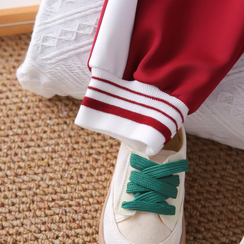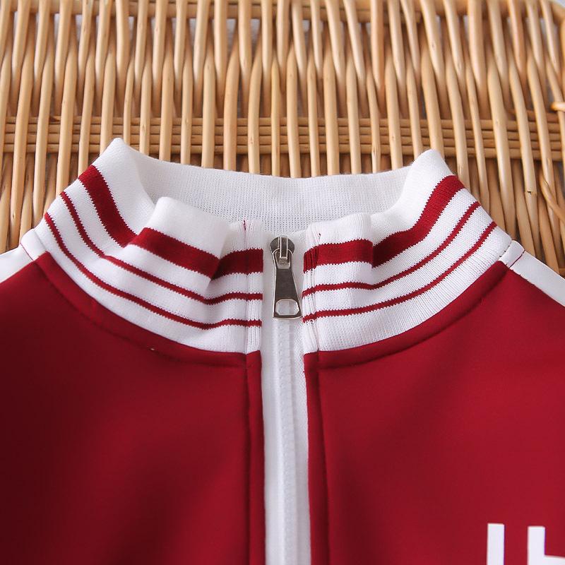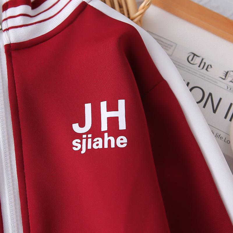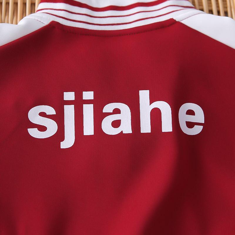 Dark red jh sports zipper shirt long-sleeved three-piece set