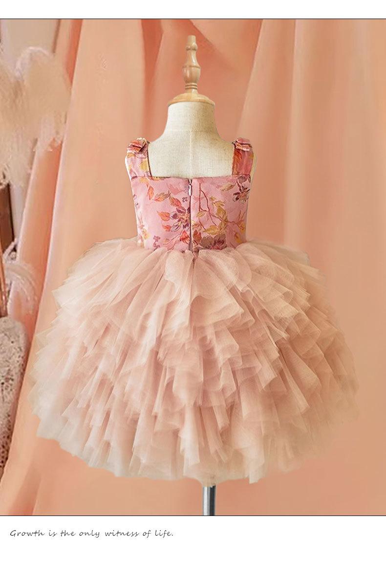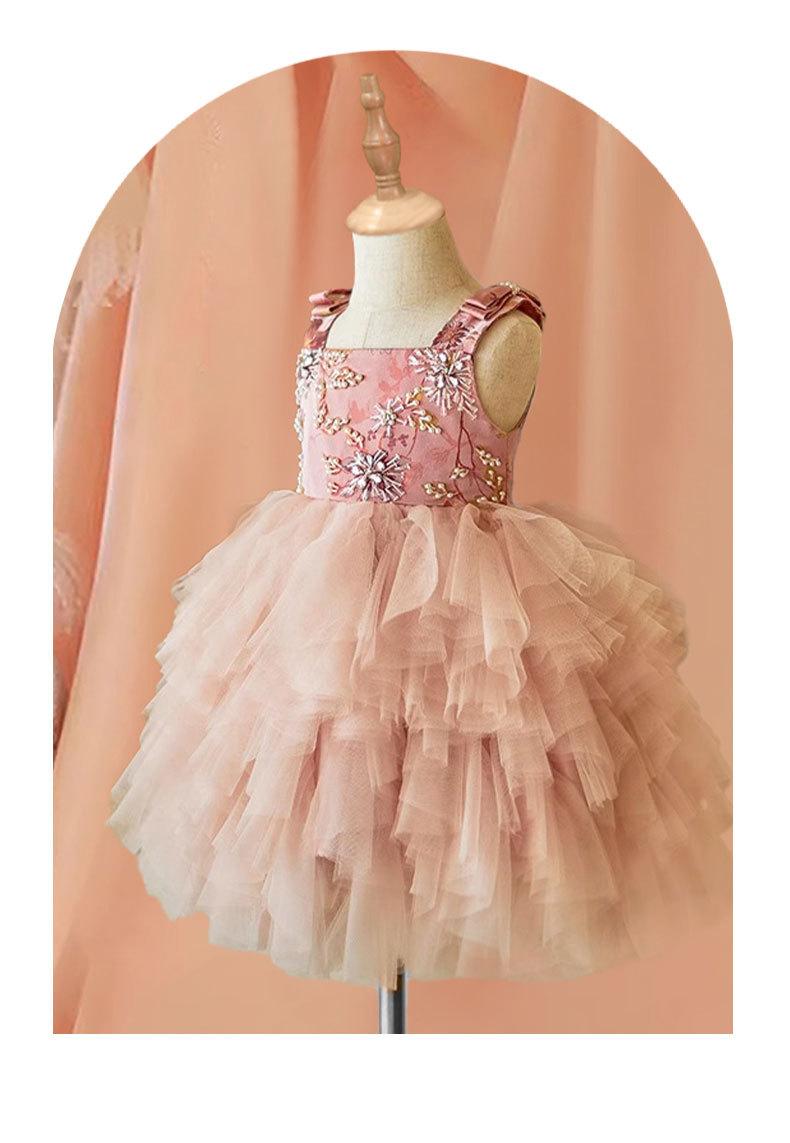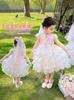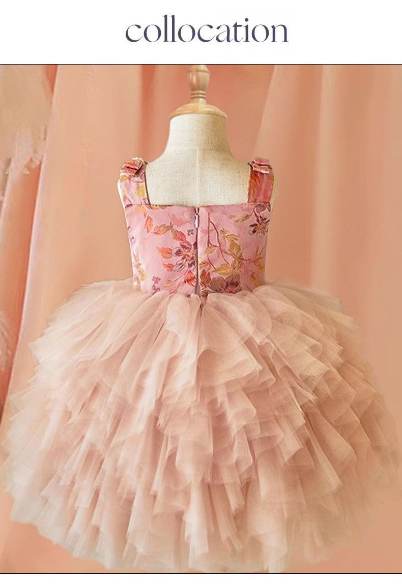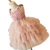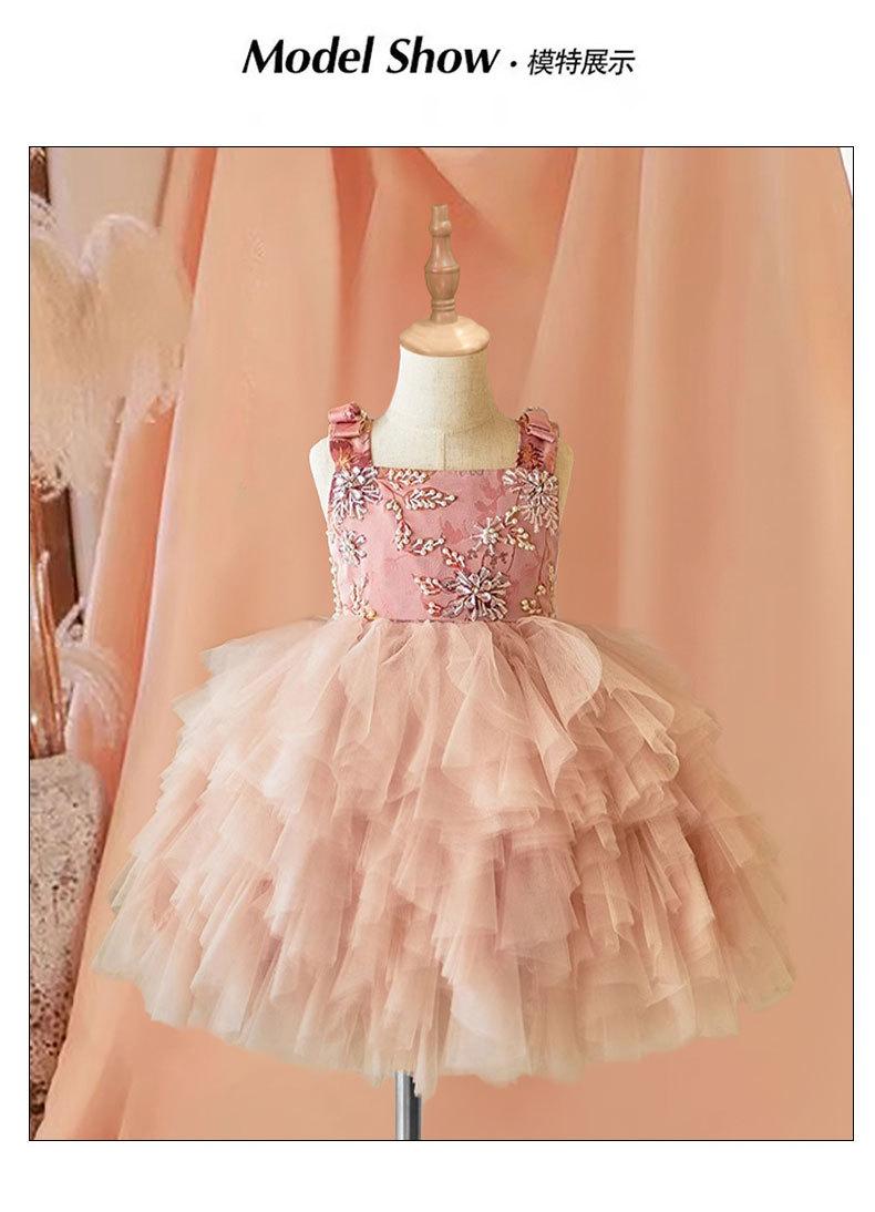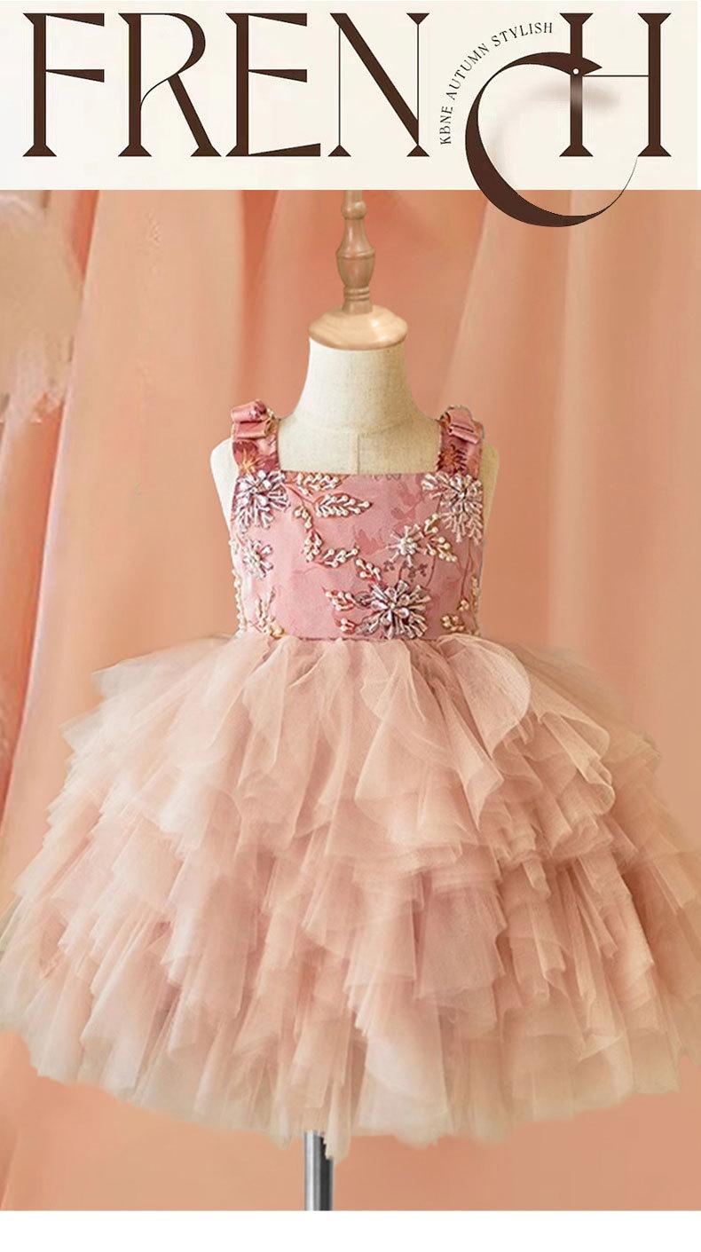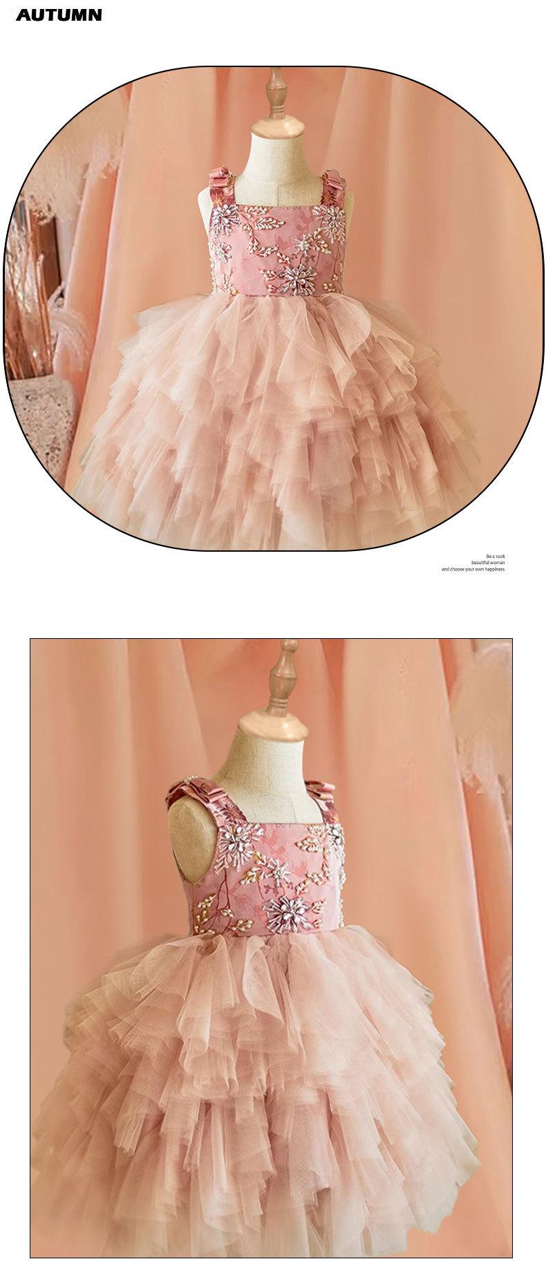 Vestido de Cumpleaños para Niñas de Clase Nicho de Lujo Ligero Vestido de Princesa para Actuación de Anfitriona Infantil Vestido de Gasa Rosa para Niña Dama de Honor