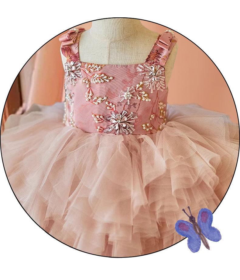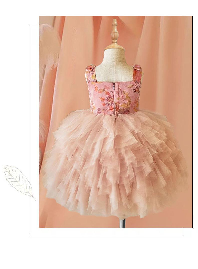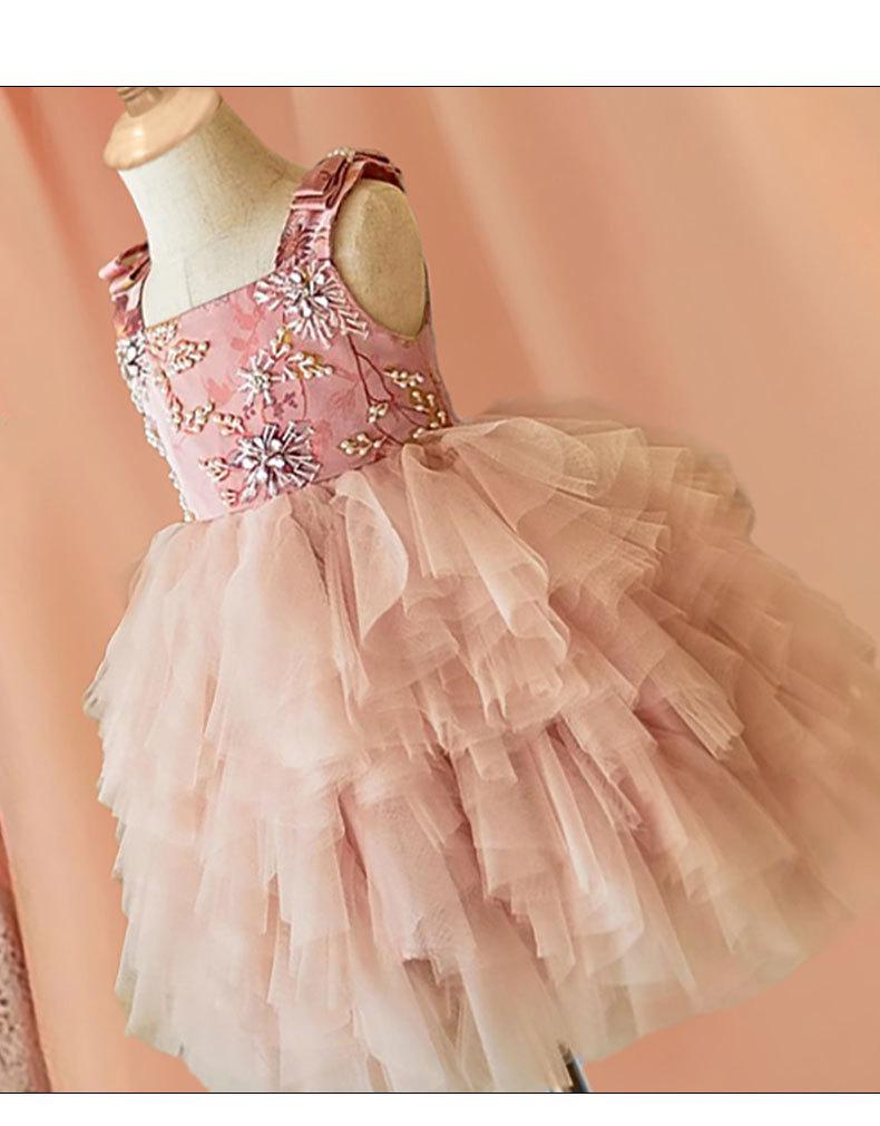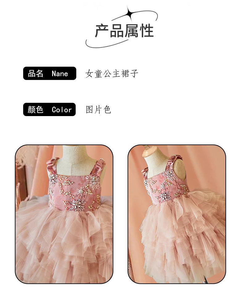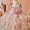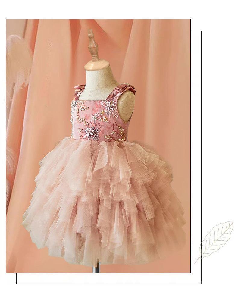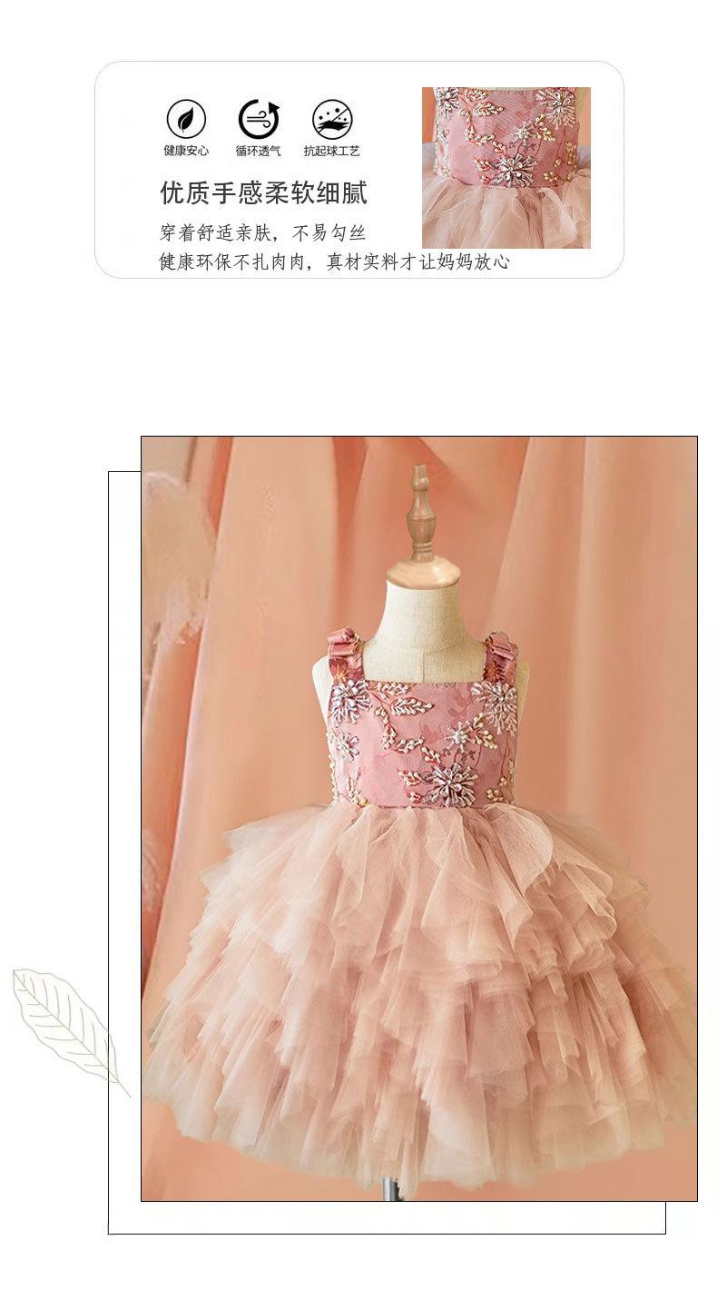 Vestido de Cumpleaños para Niñas de Clase Nicho de Lujo Ligero Vestido de Princesa para Actuación de Anfitriona Infantil Vestido de Gasa Rosa para Niña Dama de Honor