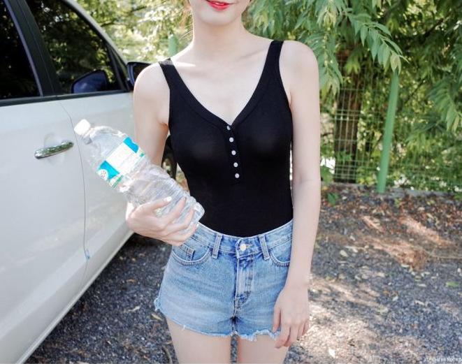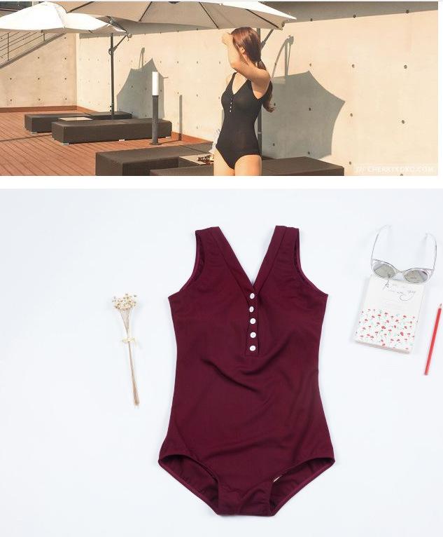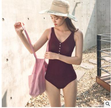 Traje de baño conservador elegante de una pieza estilo coreano 2019 para mujer, con botones, adelgazante, para busto pequeño