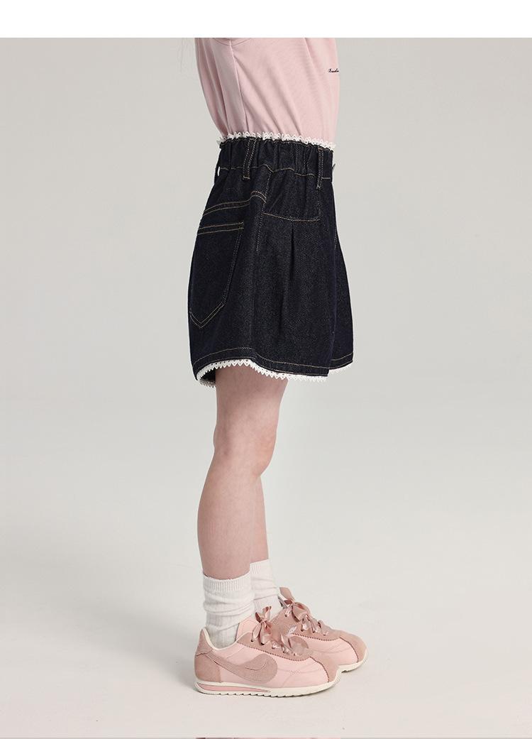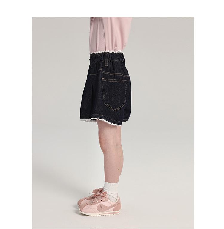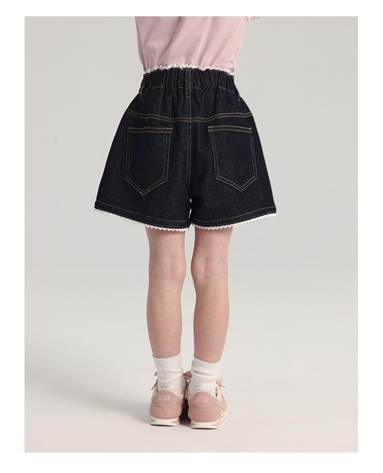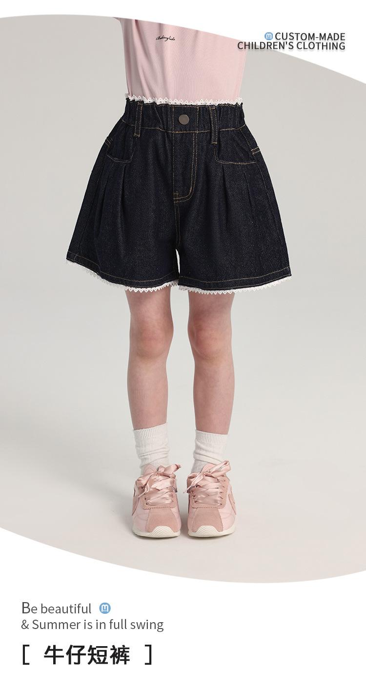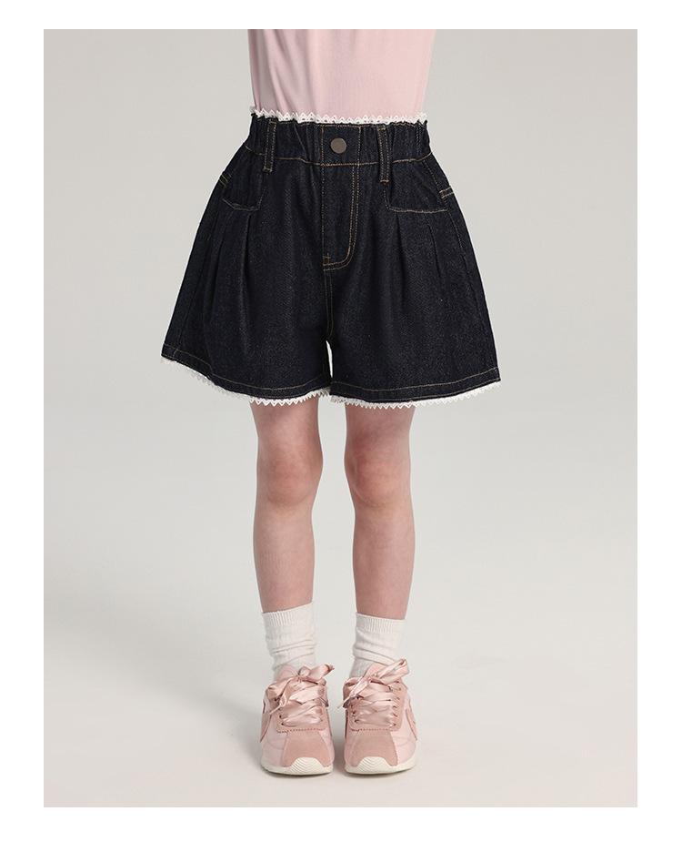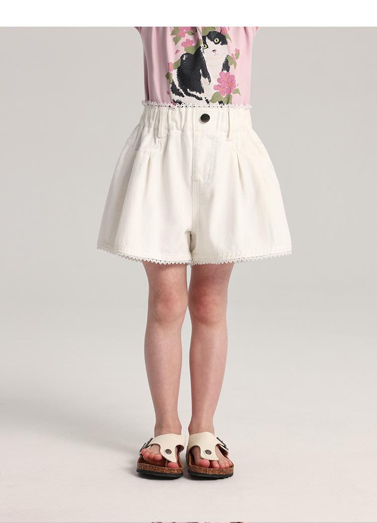 Pudding Haru Pantalones para Niñas Shorts Versátiles 2025 Verano Nuevo Shorts de Mezclilla con Encaje para Niñas