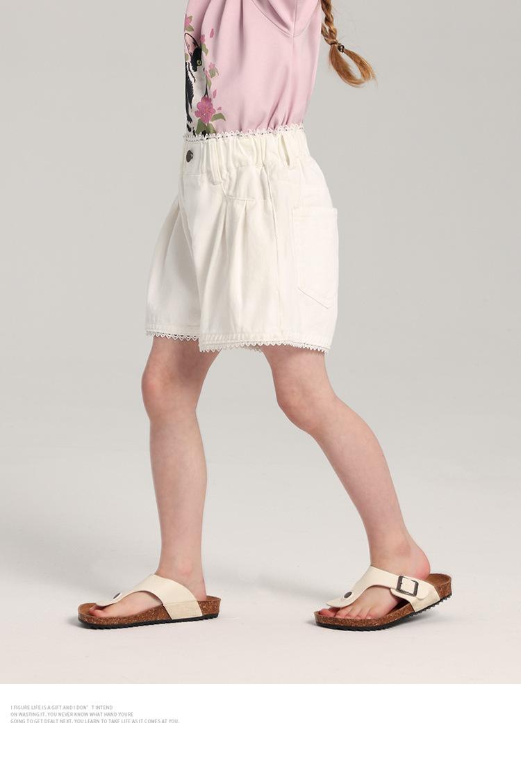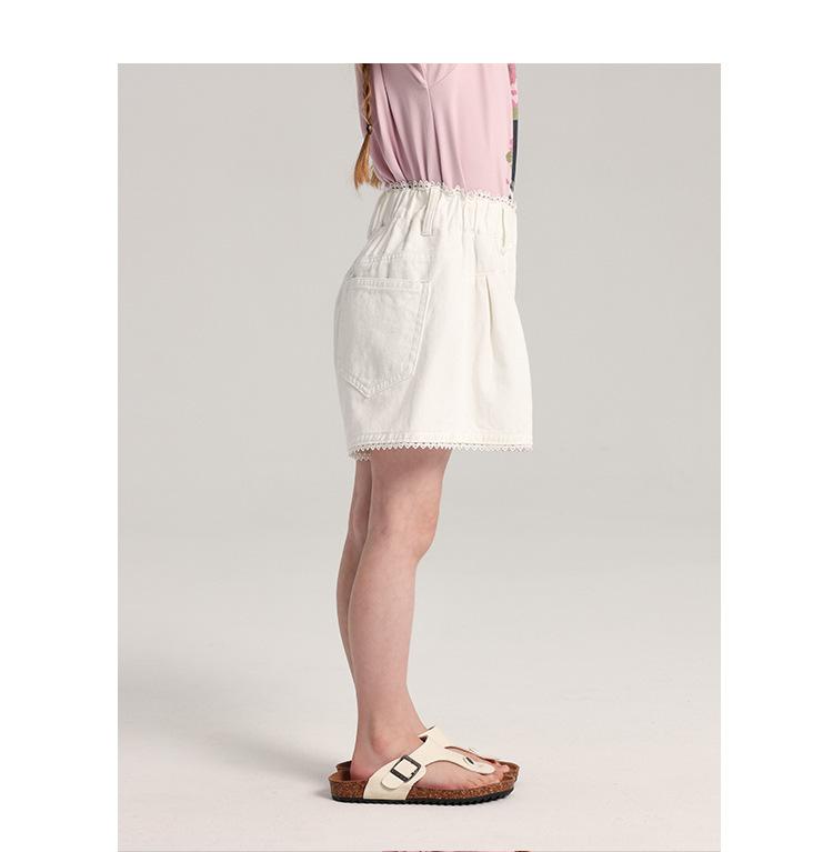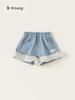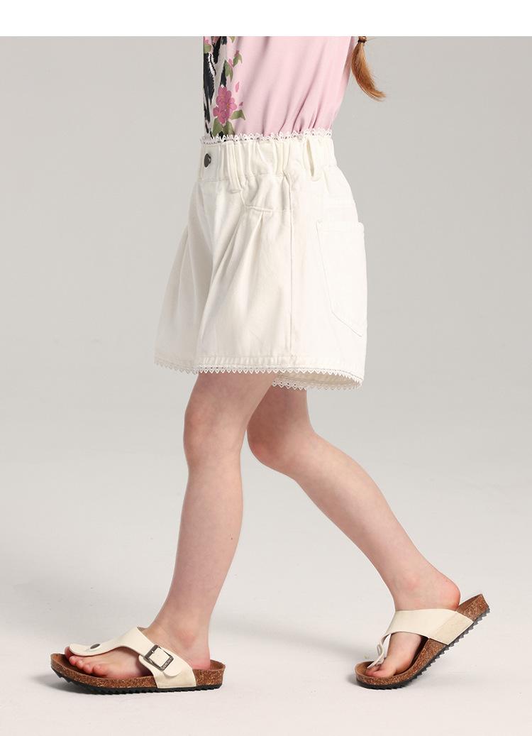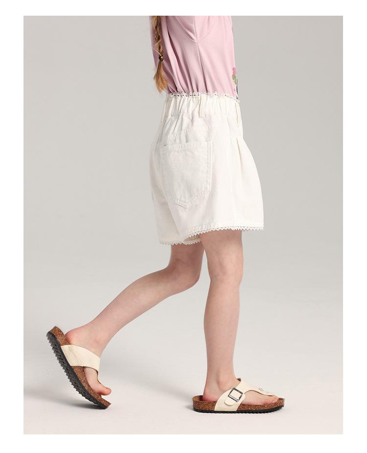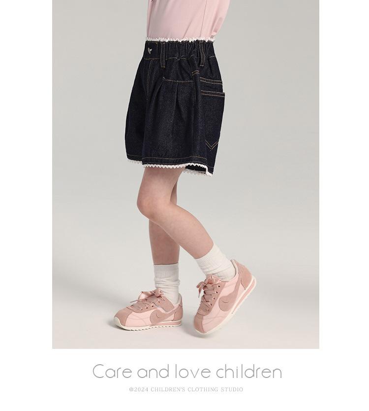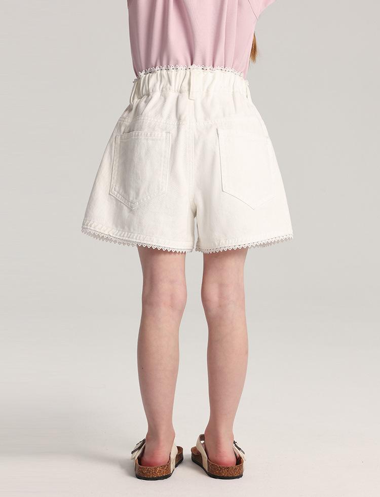 Pudding Haru Pantalones para Niñas Shorts Versátiles 2025 Verano Nuevo Shorts de Mezclilla con Encaje para Niñas