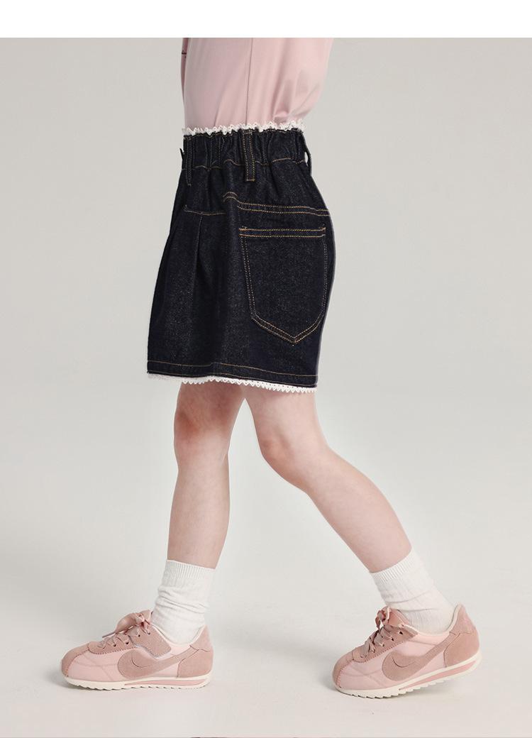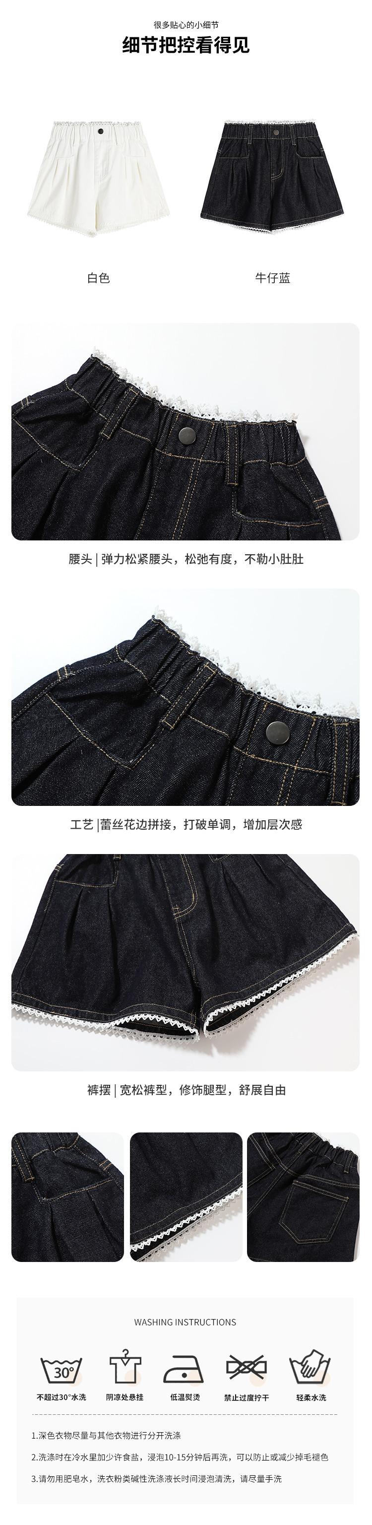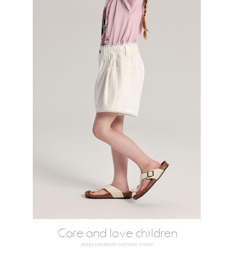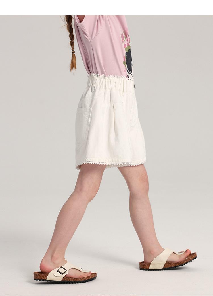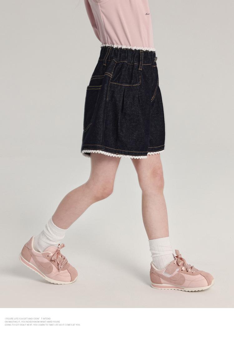 Pudding Haru Pantalones para Niñas Shorts Versátiles 2025 Verano Nuevo Shorts de Mezclilla con Encaje para Niñas