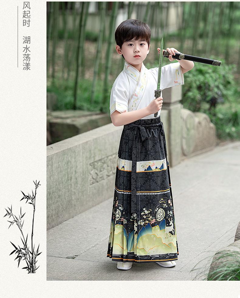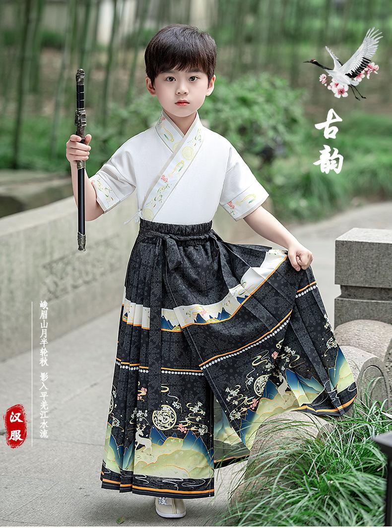 Traje Hanfu para Niños Grandes de Estilo Chino Traje Hanfu para Niños Childe Ropa para Niños de Primaria Recitación de Poesía Falda Cara de Caballo para Verano