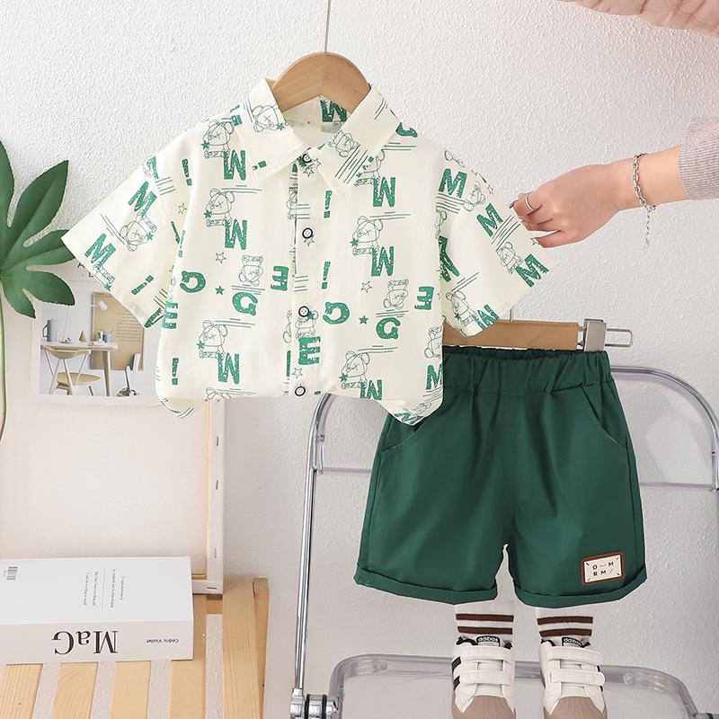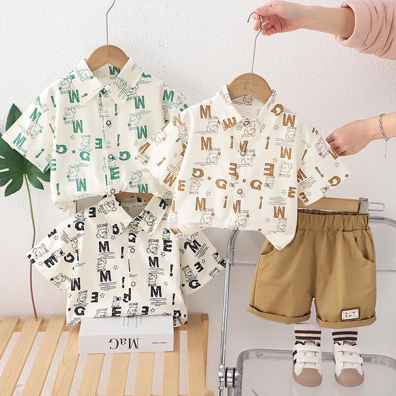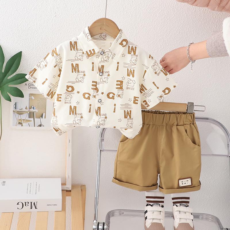Ropa de Bebé 2025 Verano Nueva Moda Ropa de Verano para Niños Traje de Manga Corta con Camiseta con Letras Estampadas para Niño de un Año