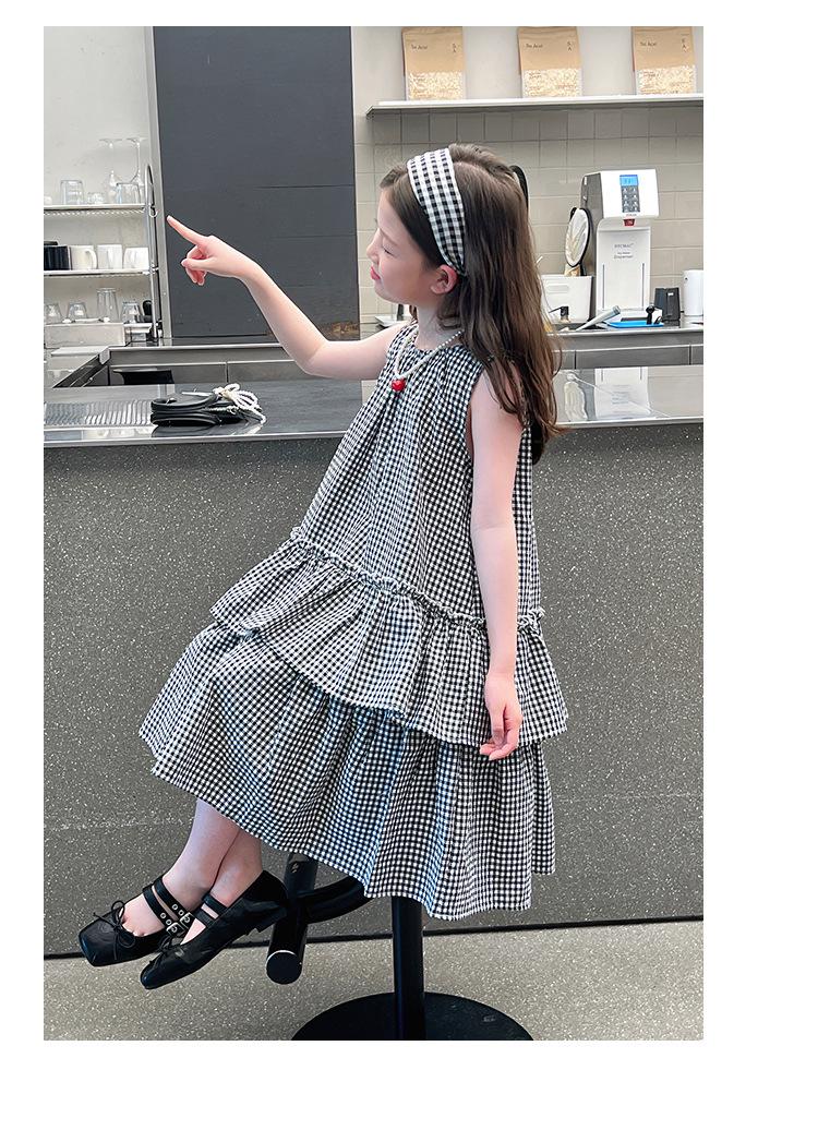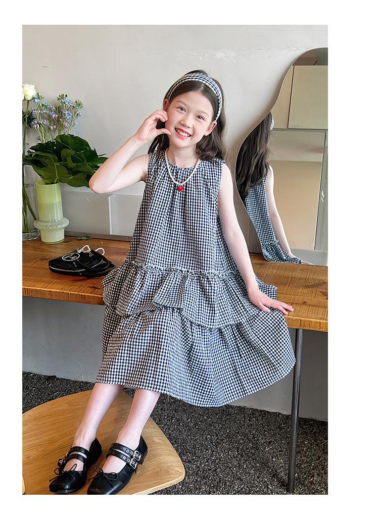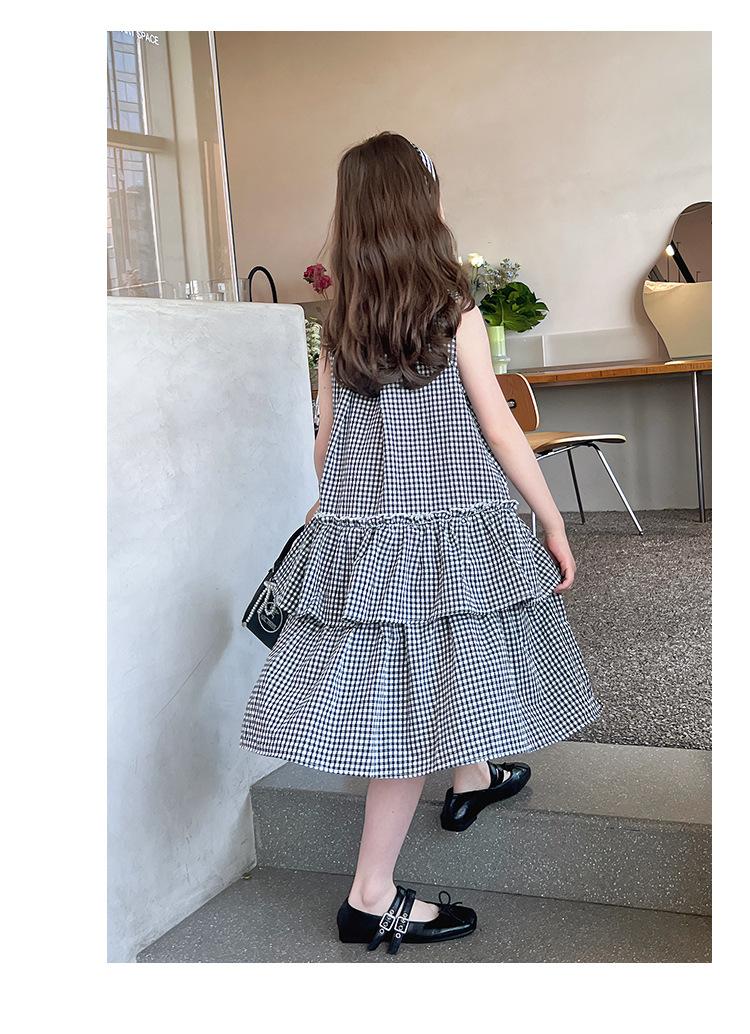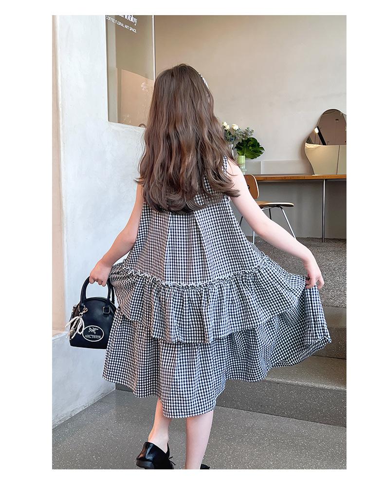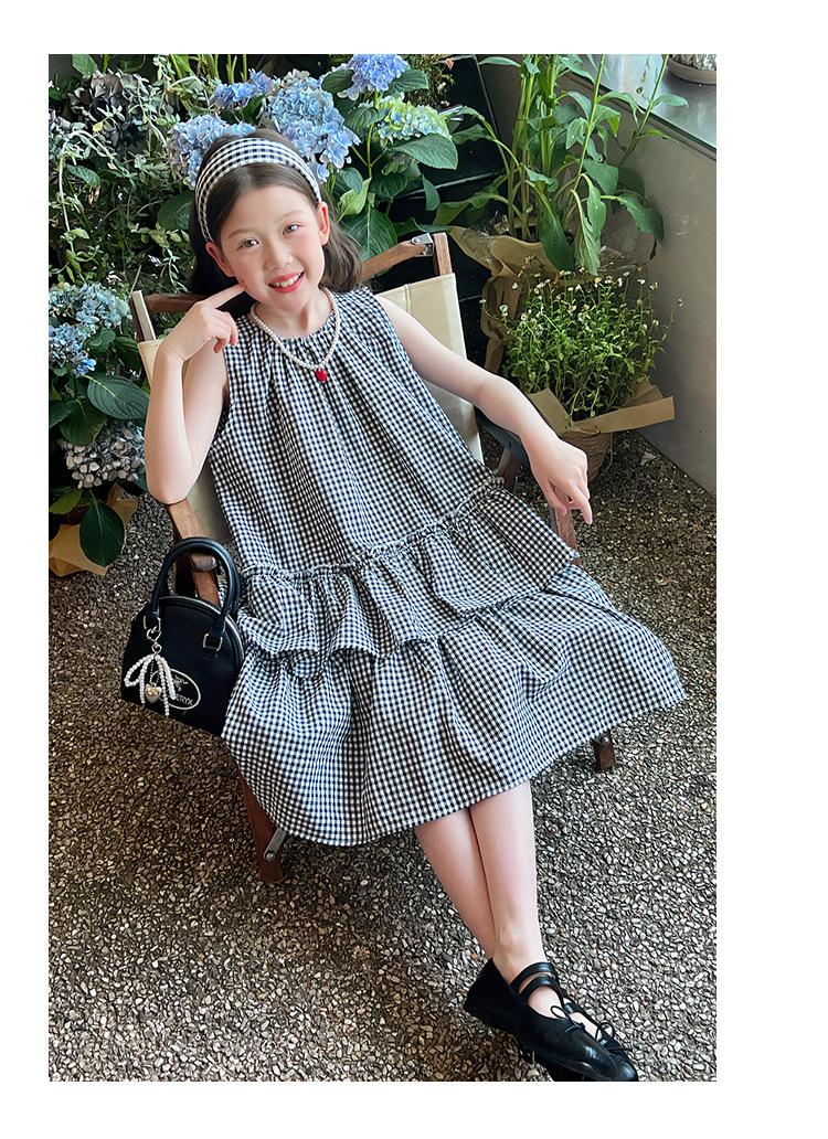 Ropa para Niños Grandes Vestido de Princesa a Cuadros Chaleco de Moda para Niñas Falda Larga sin Mangas para Niños Estilo Nuevo de Verano 2025